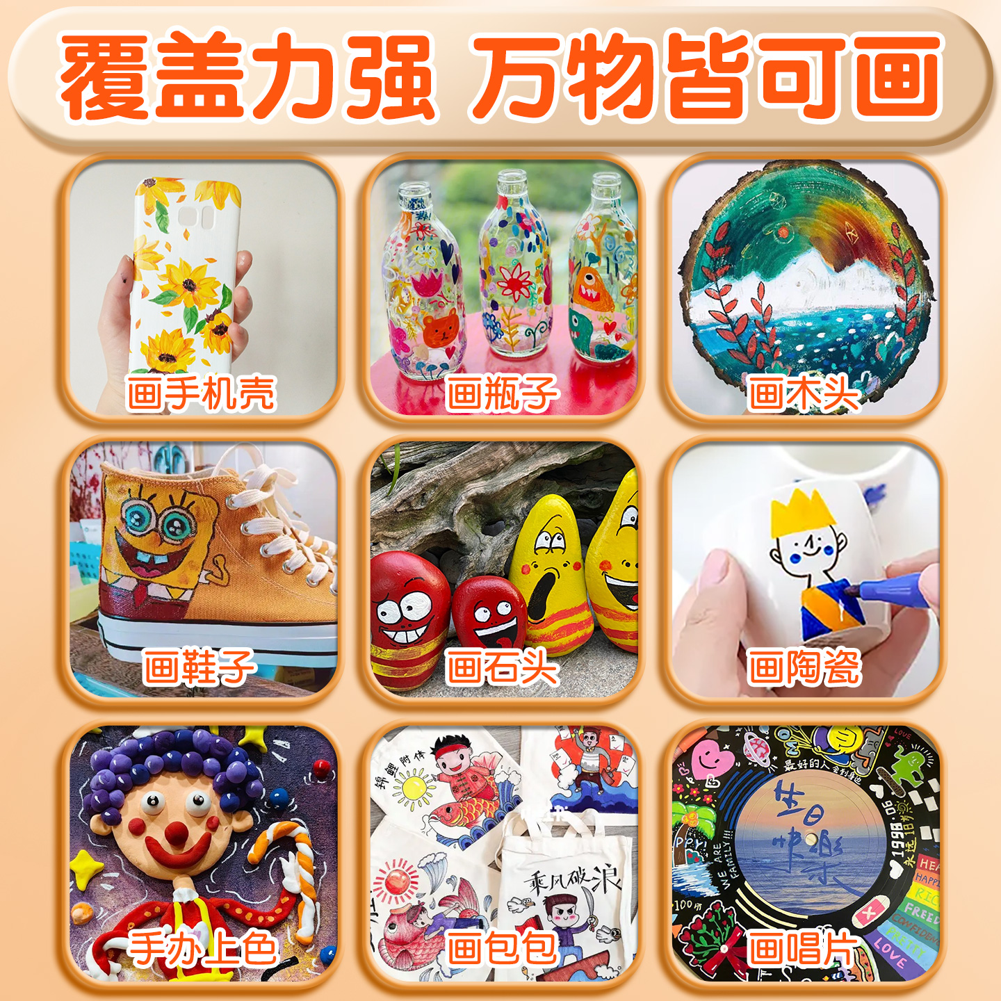 直液式丙烯马克笔48色儿童美术专用小学生用马克笔diy可叠色软头丙烯笔可水洗安全水彩笔咕卡笔24色36画画笔