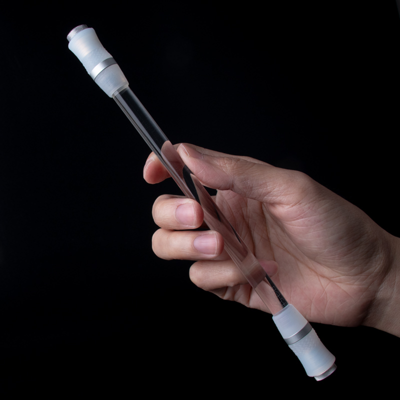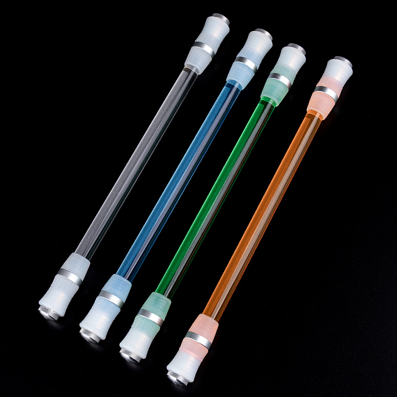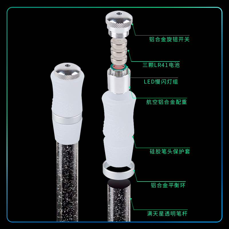 转笔者便携七彩水晶满天星转转笔LED芯片呼吸灯铝合金CNC车加工笔头阳极氧化饰圈流线设计高端收纳管包装平衡
