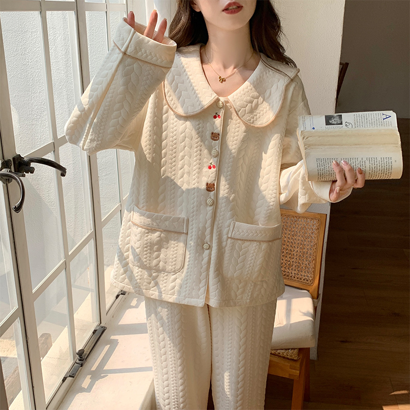 2025新款睡衣女秋冬季空气棉夹层春秋长袖加厚女士家居服套装居家