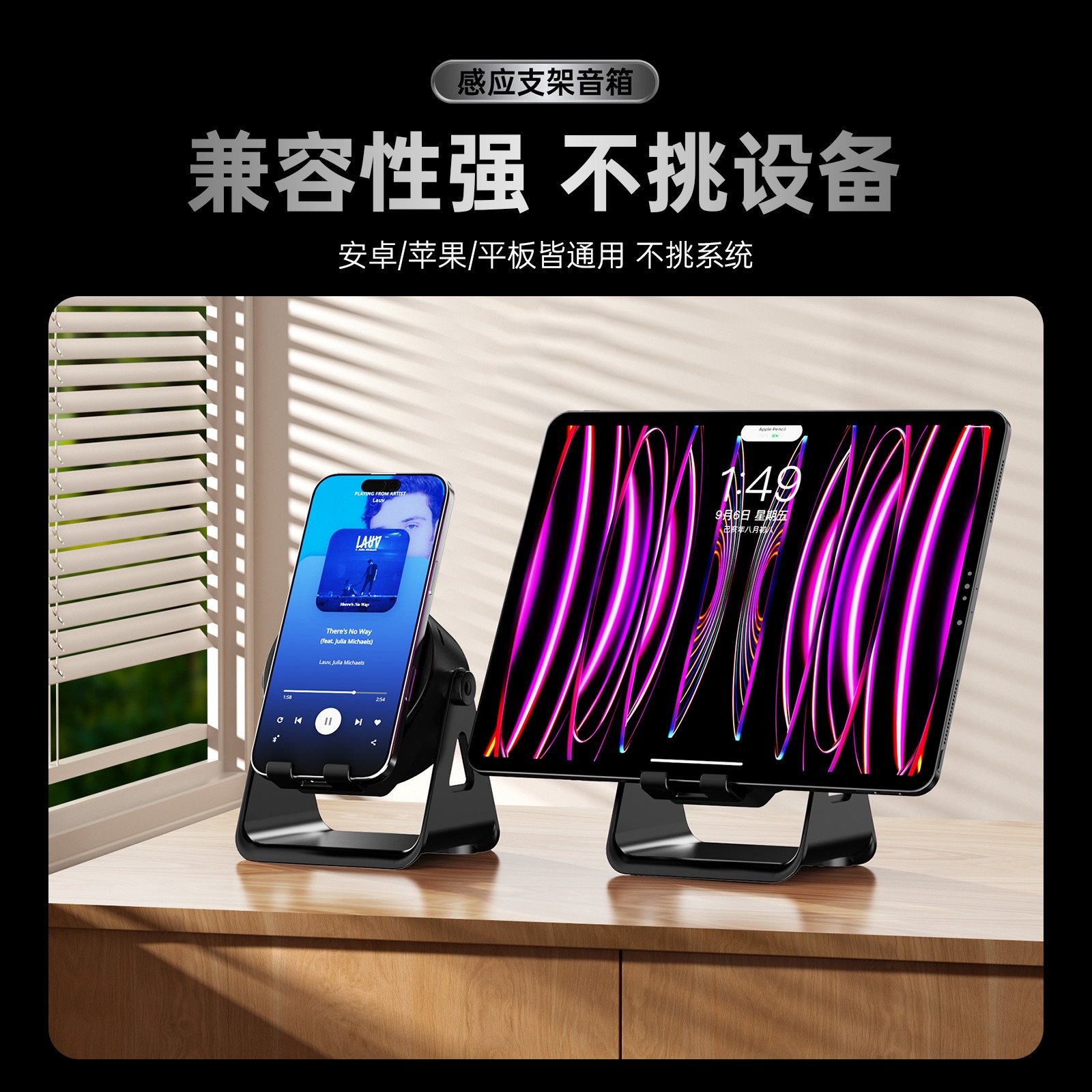 磁吸自动感应秒连接免蓝牙立体小音响桌面手机支架蓝牙磁吸双模式