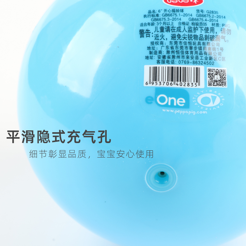 小猪佩奇手柄球摇铃球婴幼儿球类玩具10宝宝皮球儿童专用充气训练