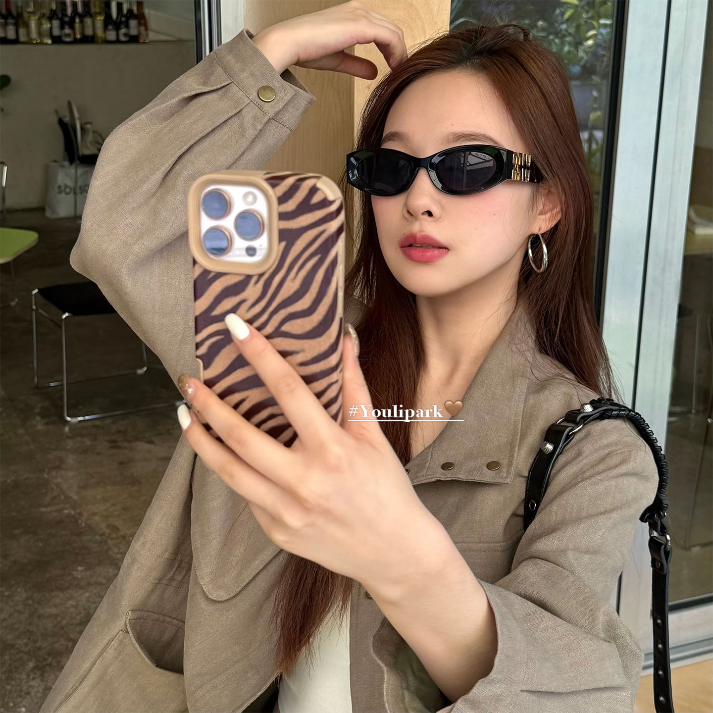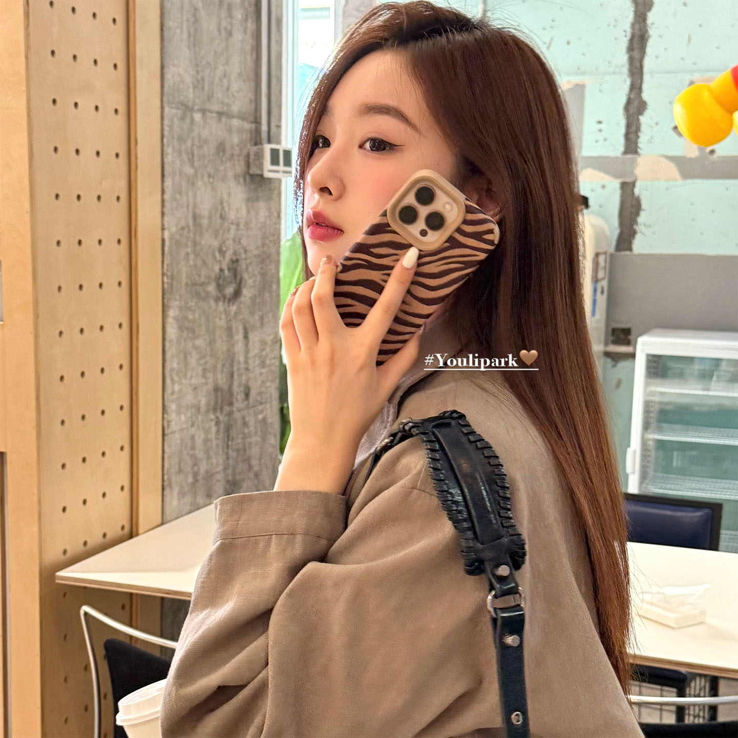 由里公园ins秋冬韩系复古栗子棕斑马纹15适用16pro苹果16ProMax手机壳iPhone16全包14新款14Promax保护套13女