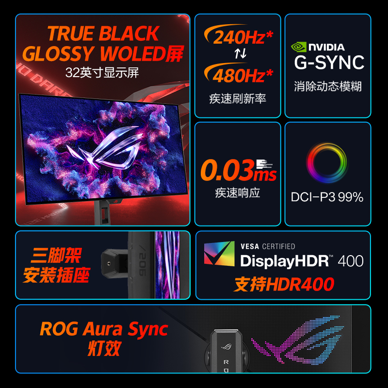 华硕ROG XG32UCWMG绝神X双模OLED 31.5英寸4K双模240Hz高刷显示器