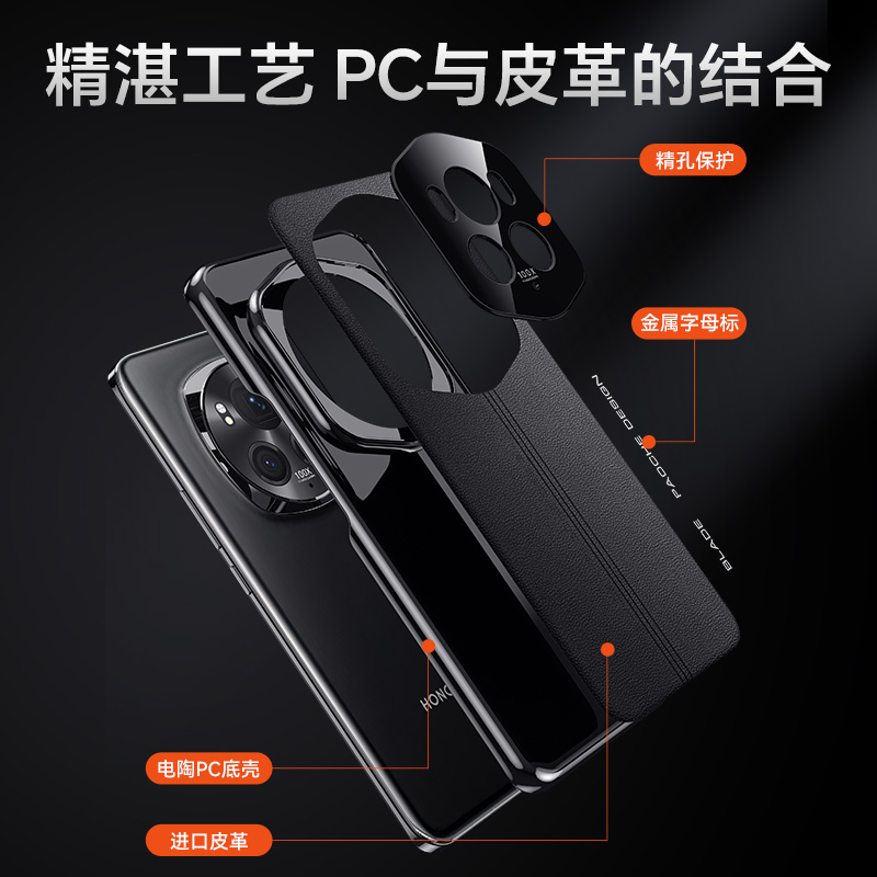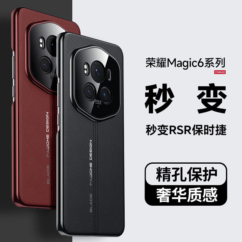 适用荣耀magic6手机壳新款magic6pro保护套秒变保时至臻版奢华素皮华为honor魔术6镜头全包纤维纹防摔高级感
