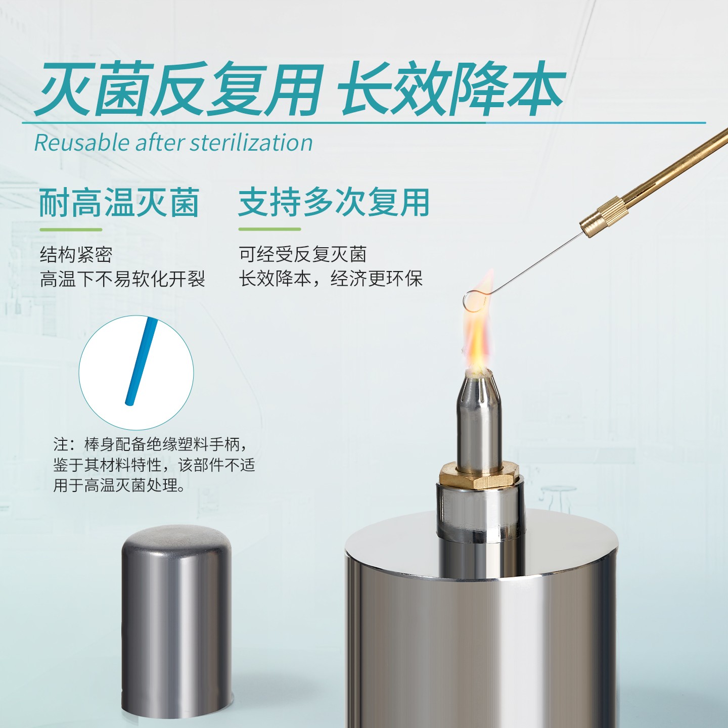 Labshark全铜微生物接种棒金属接种环微生物细胞塑料接种环接种针取菌针实验室涂布棒合金接种环耐酸采样棒