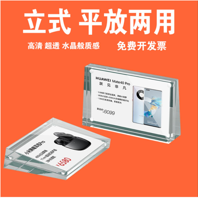 亚克力双面标价牌展示架 标签牌标价签 透N明水晶斜面台桌牌台卡