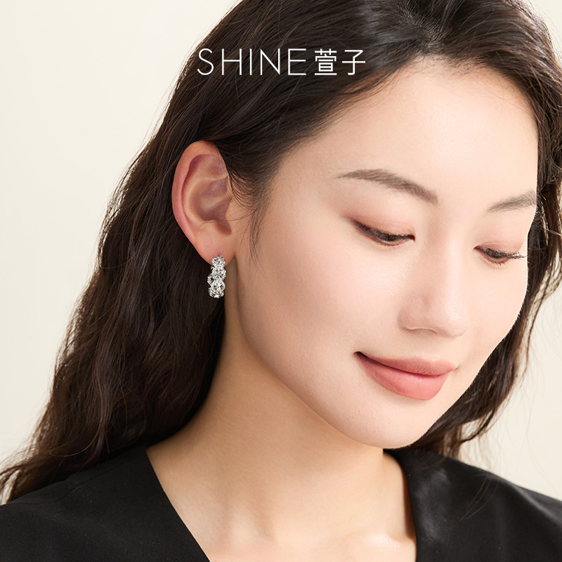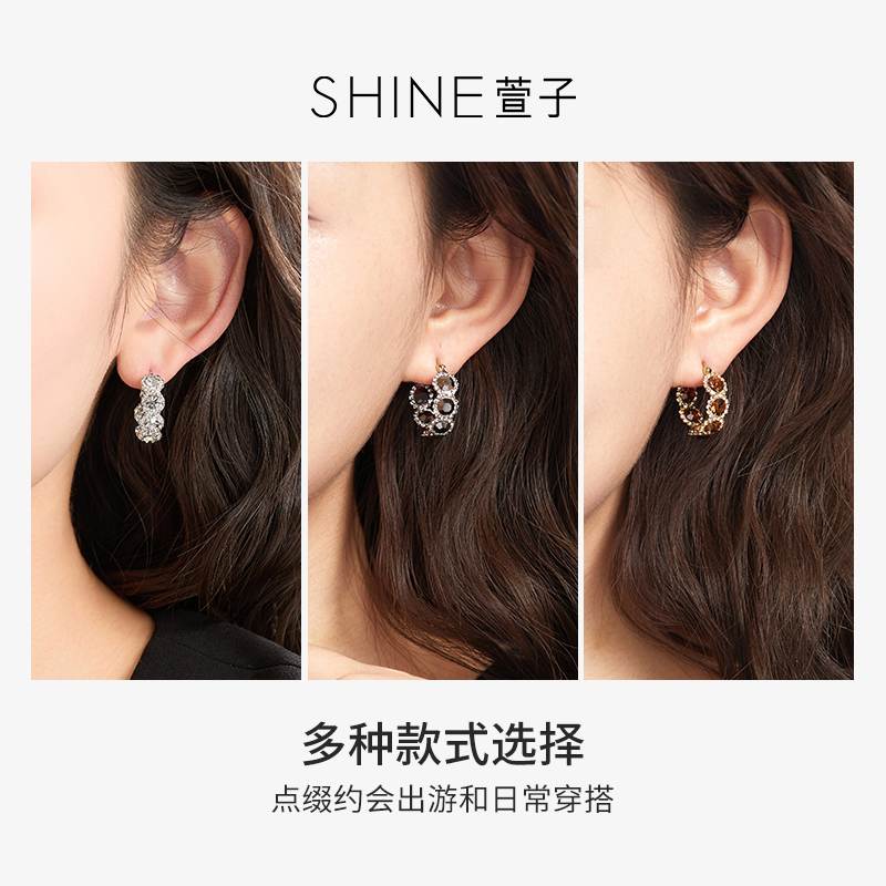 SHINE萱子饰品优雅奢华水钻耳环百搭耳饰日常耳扣耳圈生日礼物