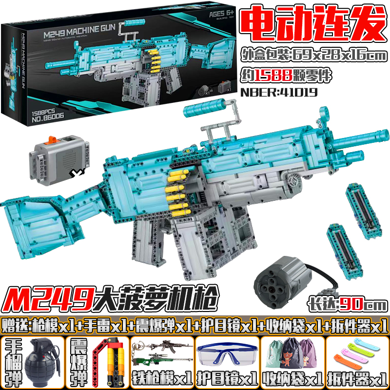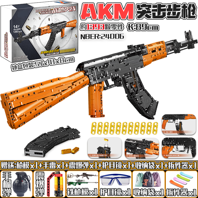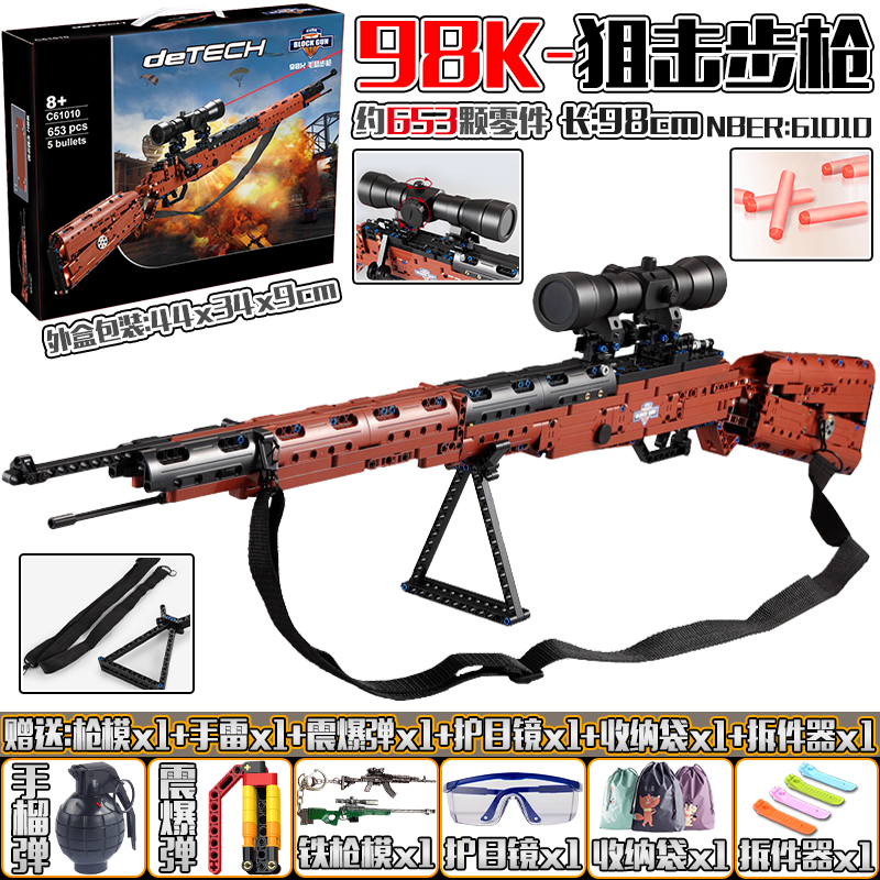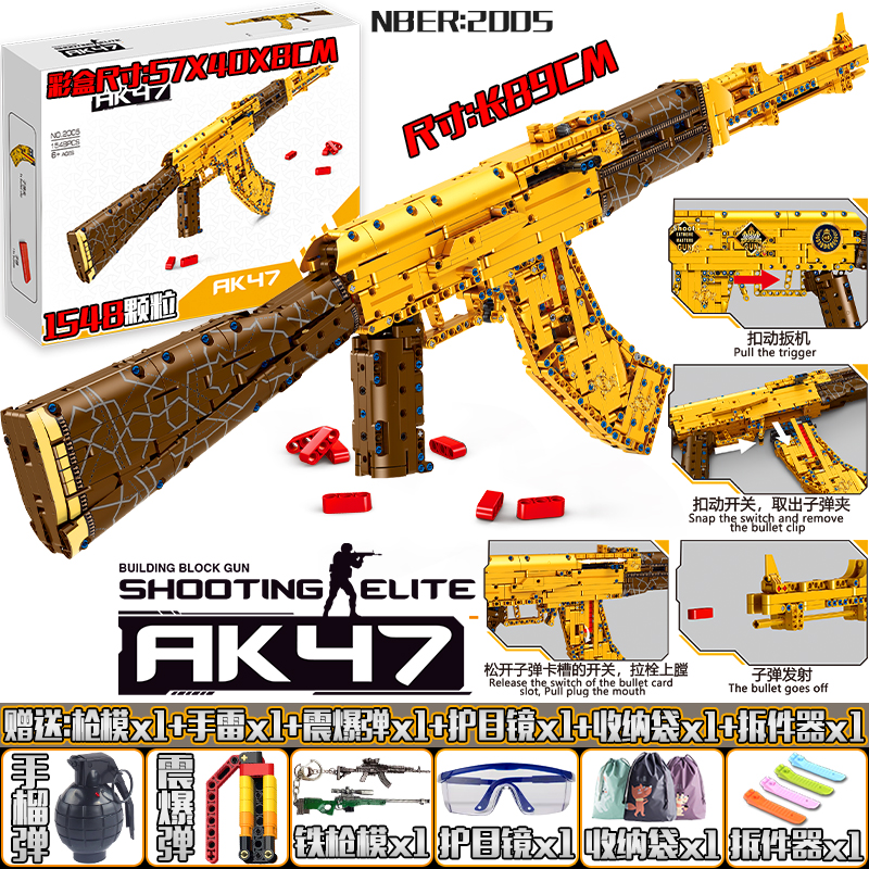 高难度大型黄金AK47突击步枪积木大菠萝机枪98K狙击枪拼装玩具男6