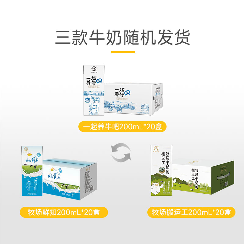 认养牧场搬运工纯奶200ml*20盒装全脂成人儿童悠纯早餐奶新鲜养牛