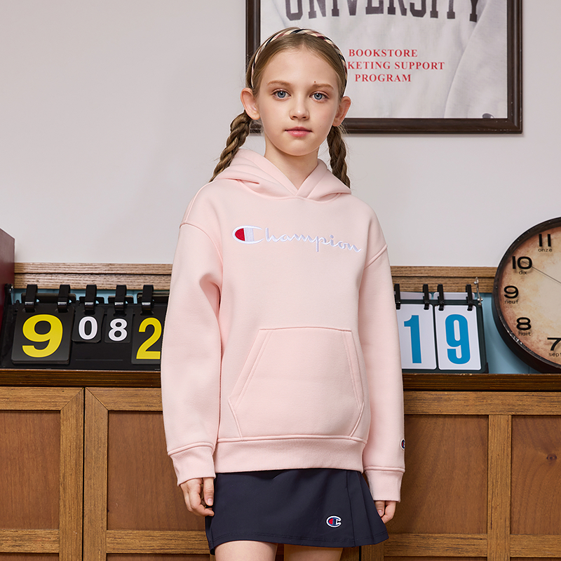 【加绒】Champion冠军童装2025秋新款男女复古学院风连帽卫衣外套