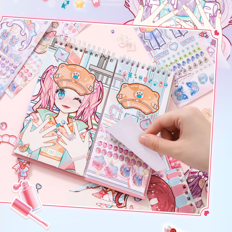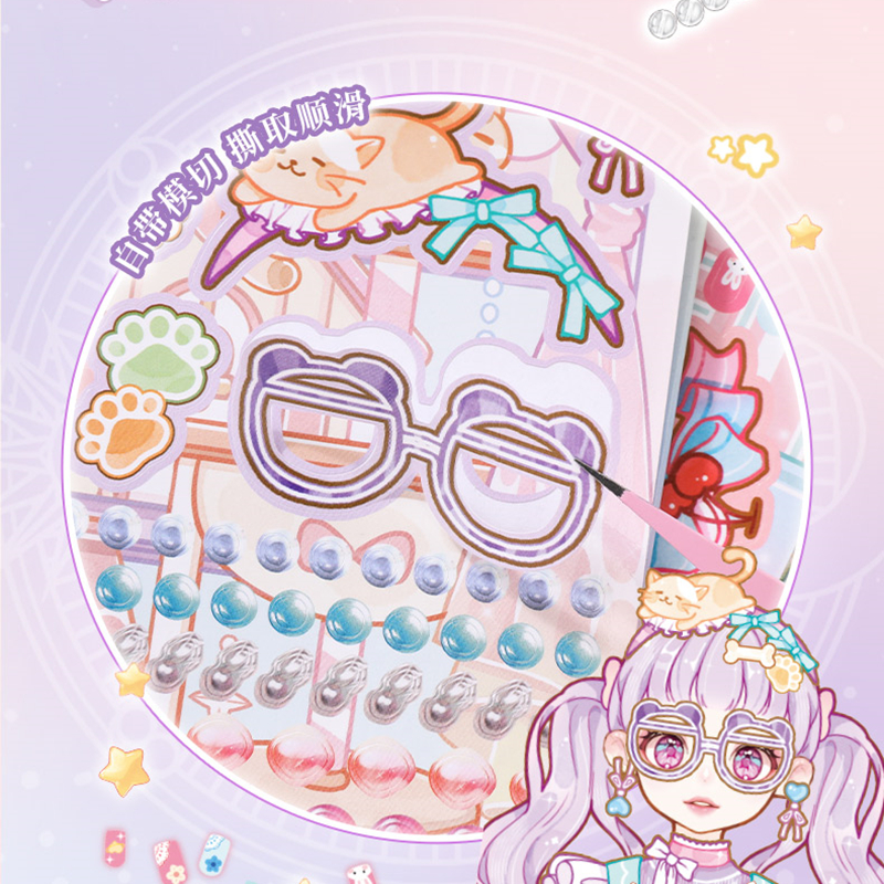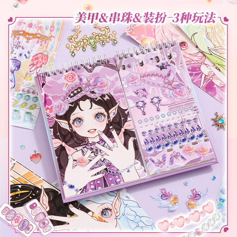 3合1玩法二次元公主美甲美妆串珠化妆免剪裁益智贴纸安静书DIY手工儿童节周末女孩奖励孩子5678910岁生日礼物