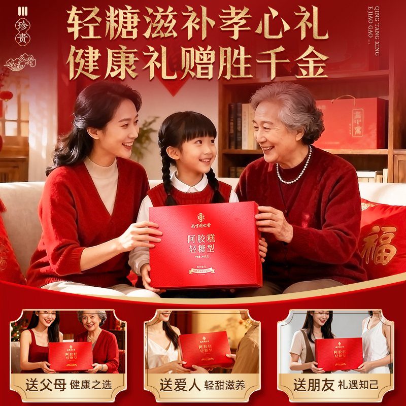 南京同仁堂低糖阿胶糕礼盒正品补气补血旗舰店送女友长辈妈妈礼物