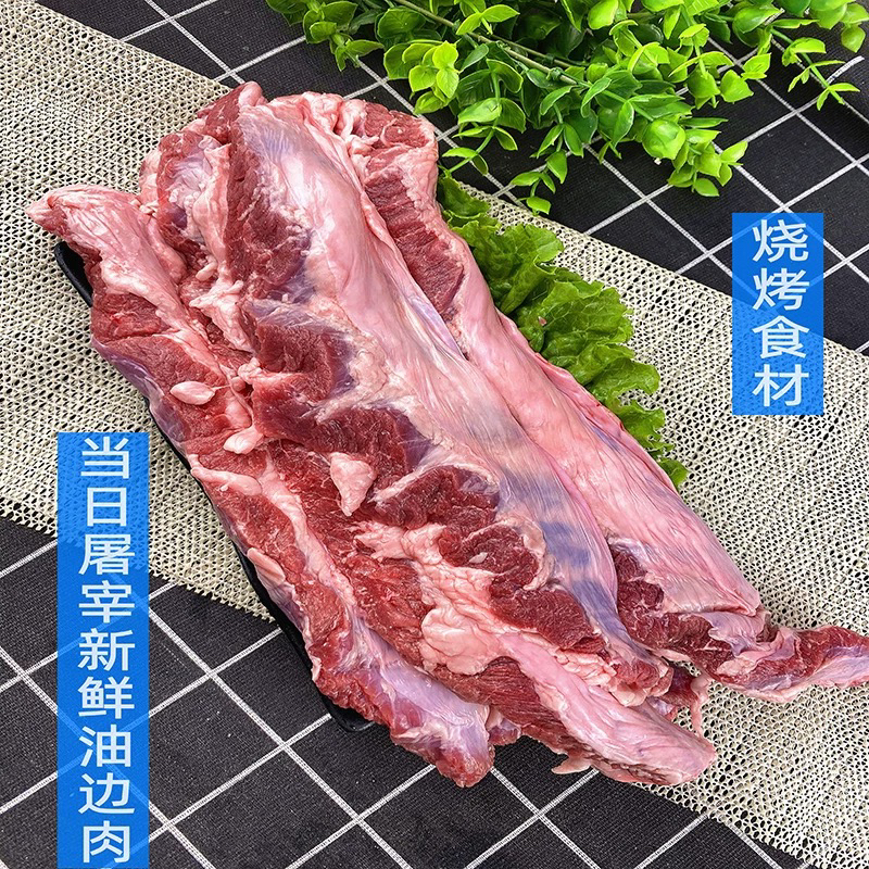 新鲜东北大油边肉锦州烧烤食材半成品大串护心猪油边烤肉商用批发