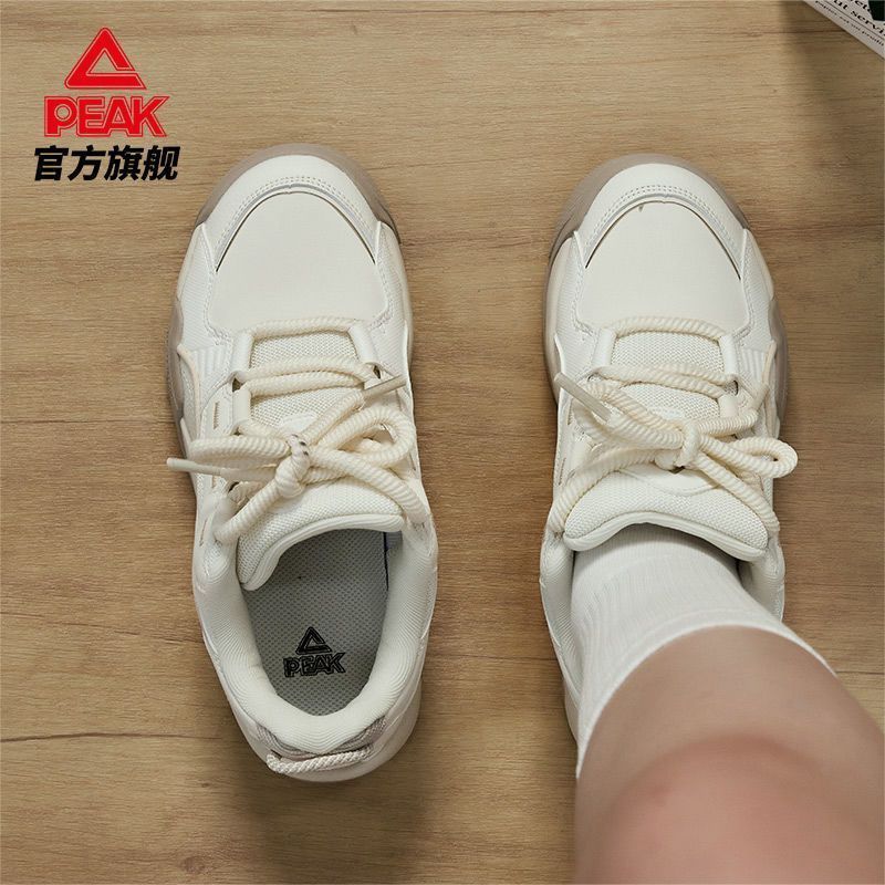 匹克正品漫游态极板鞋女鞋革面软弹舒适运动鞋增高百搭休闲简约鞋