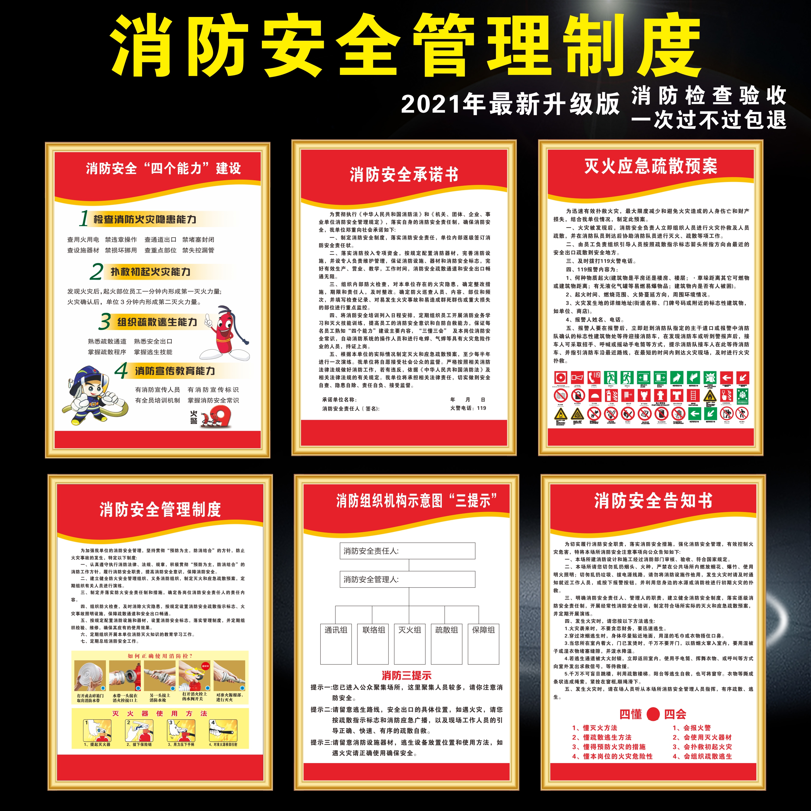 消防安全管理制度灭火应急疏散预案消防安全告知书四个能力五个第一消防三提示四等四会新版消防制度牌标识牌