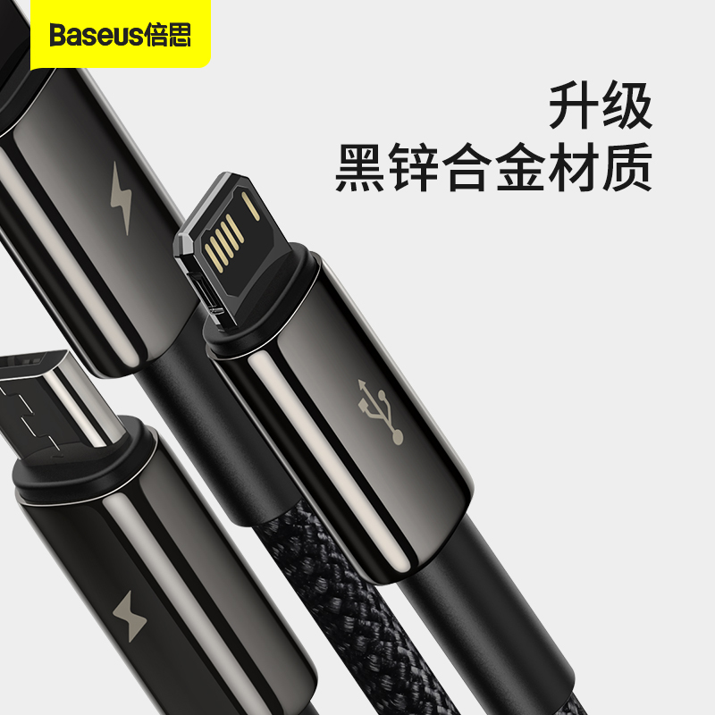 倍思数据线三合一充电线器一拖三快充三头适用多头车载苹果Typec充手机车超级车用汽车USB伸缩多功能多用电器