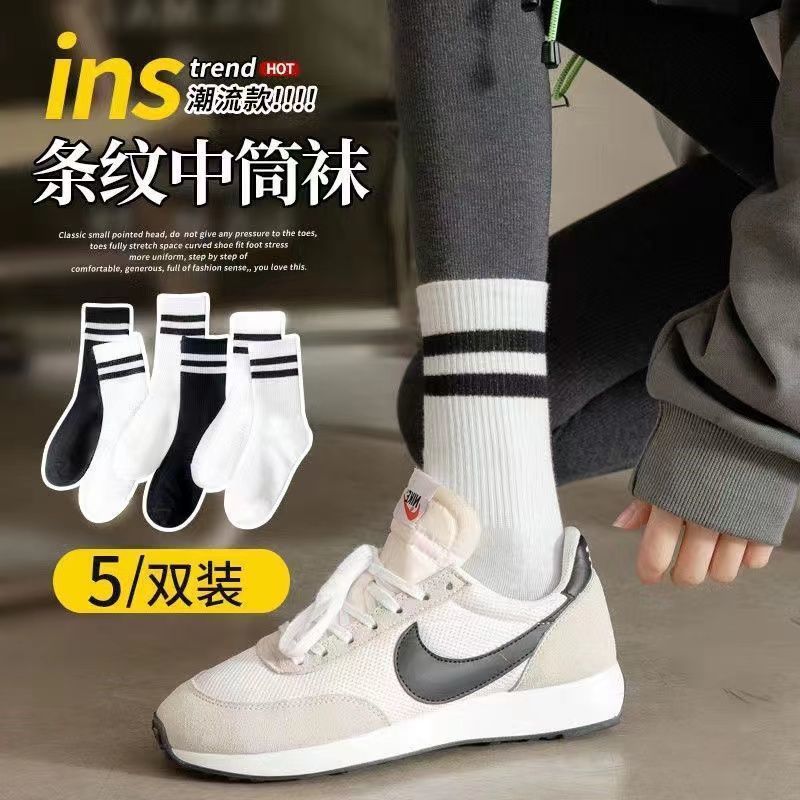 鲨鱼裤配的袜子女防臭防脚气外穿中筒袜男女士纯棉长袜ins潮抗菌