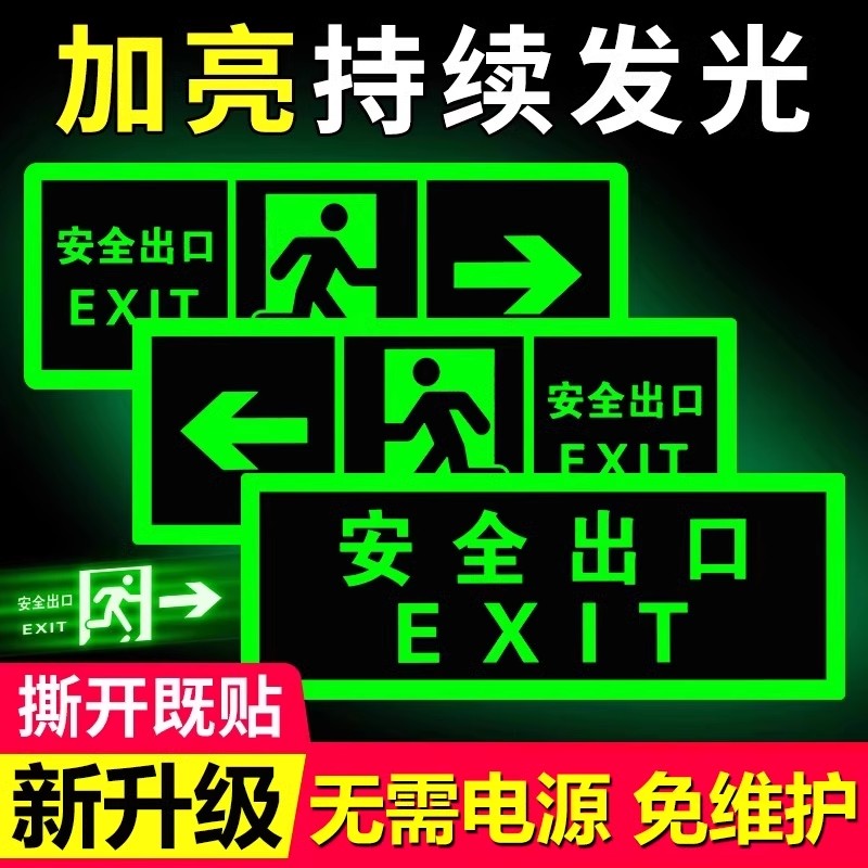 安全出口指示牌PVC夜光消防标识标牌箭头地标贴提示墙贴自发光疏散警示标志荧光应急紧急逃生贴纸标示贴地贴