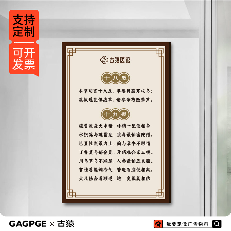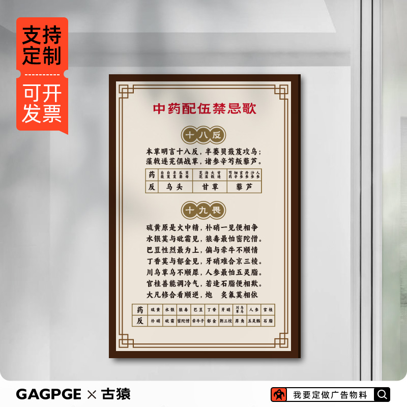 中医诊所十八反十九畏标识牌三查八对中药配伍禁忌表妊娠制度贴牌