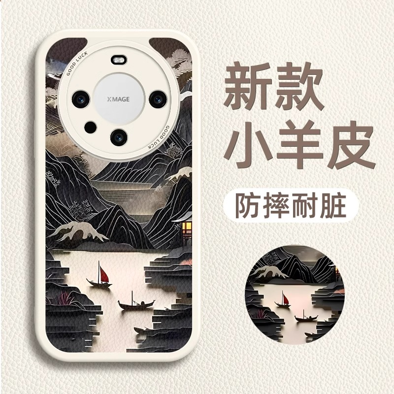 轻舟过山适用华为mate60pro+手机壳新款女pura70Ultra轻奢荣耀10090挂绳50复古高级小羊皮防摔套nova1211手链