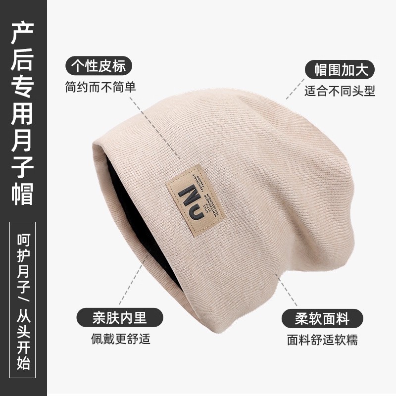 孕妇堆堆帽女月子帽夏薄款秋冬纯棉产妇帽防风帽子睡觉大头围产后