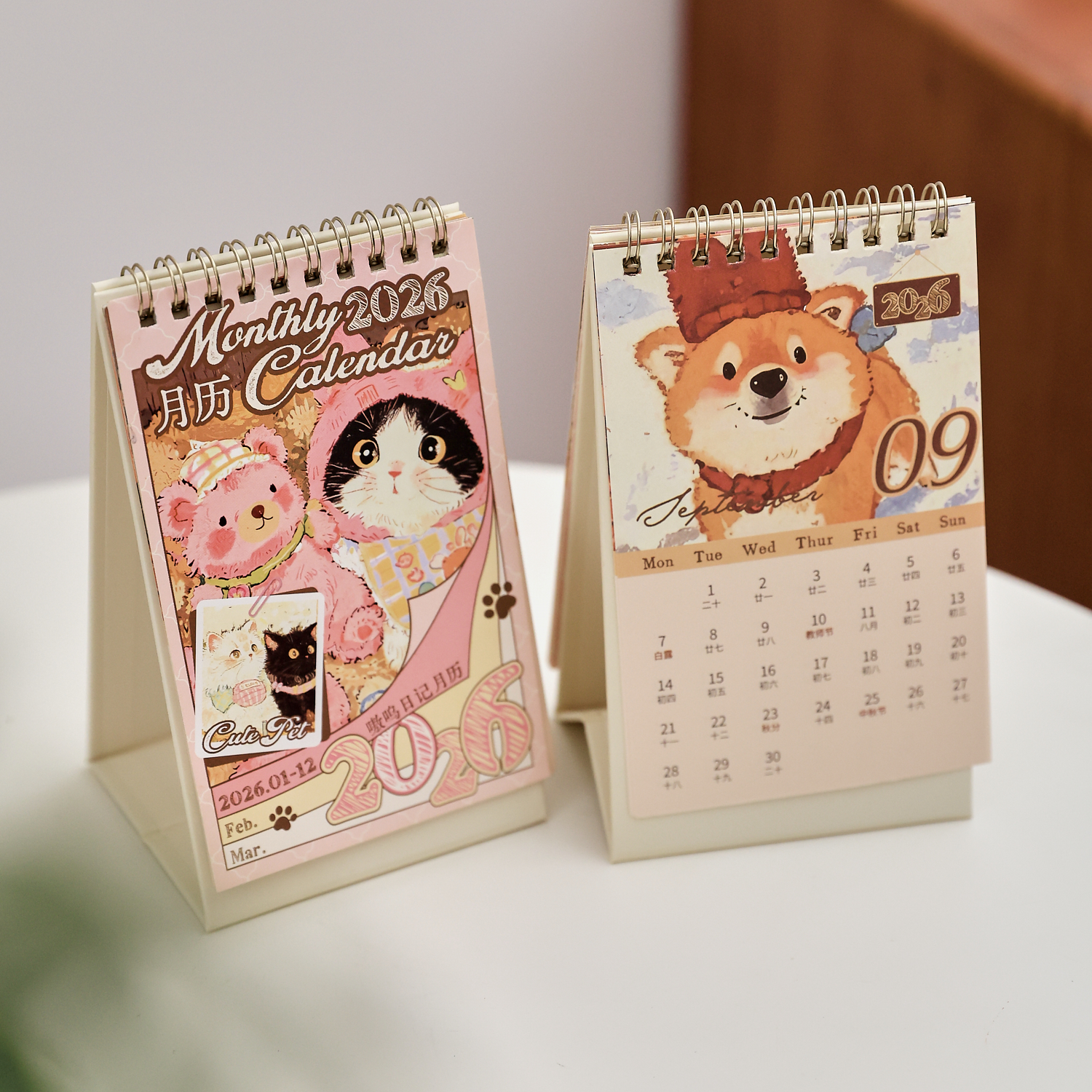 2026年嗷呜日记猫咪日历可爱小狗插画打卡计划月历桌面摆件台历