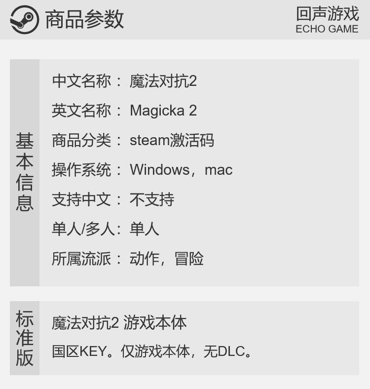Steam 正版 国区 激活码 魔法对抗2 Magicka 2 魔能2 魔法 合作
