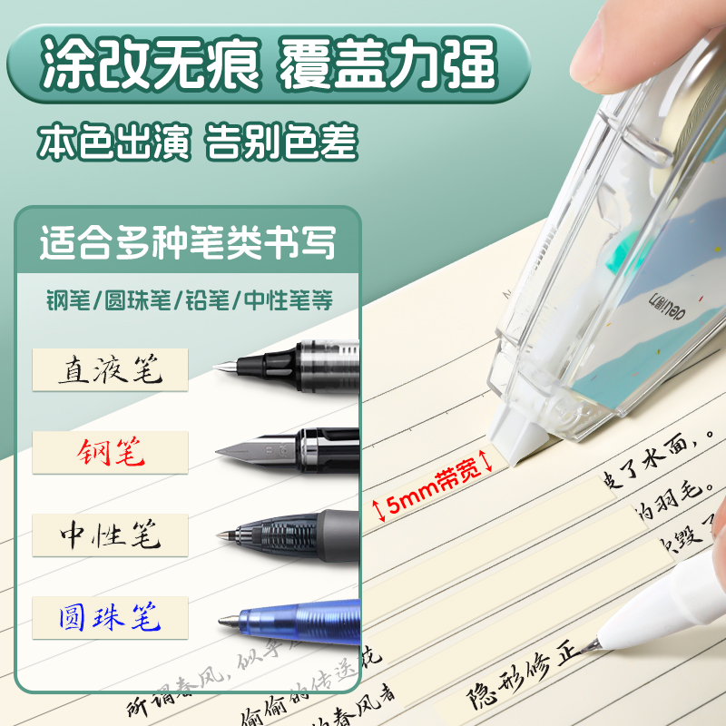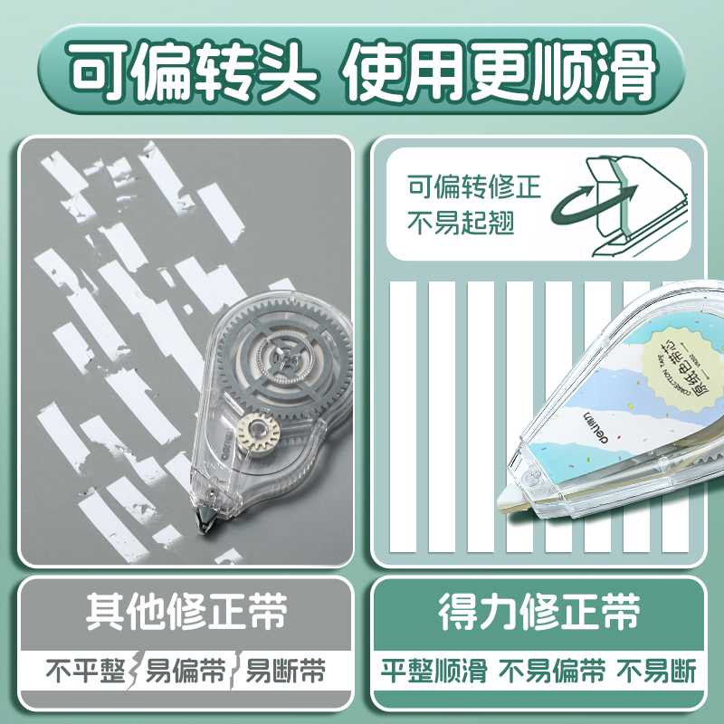 得力真静音修正带小学生专用大容量实惠装涂改带改正带顺滑初中生专用高颜值原纸色休正带修改带消字涂改液