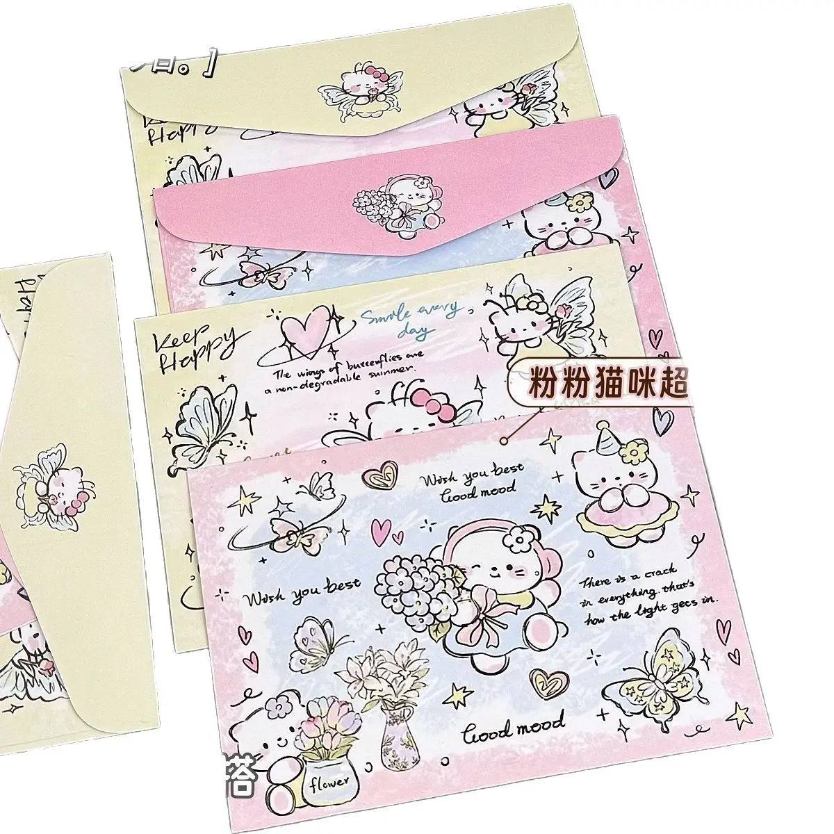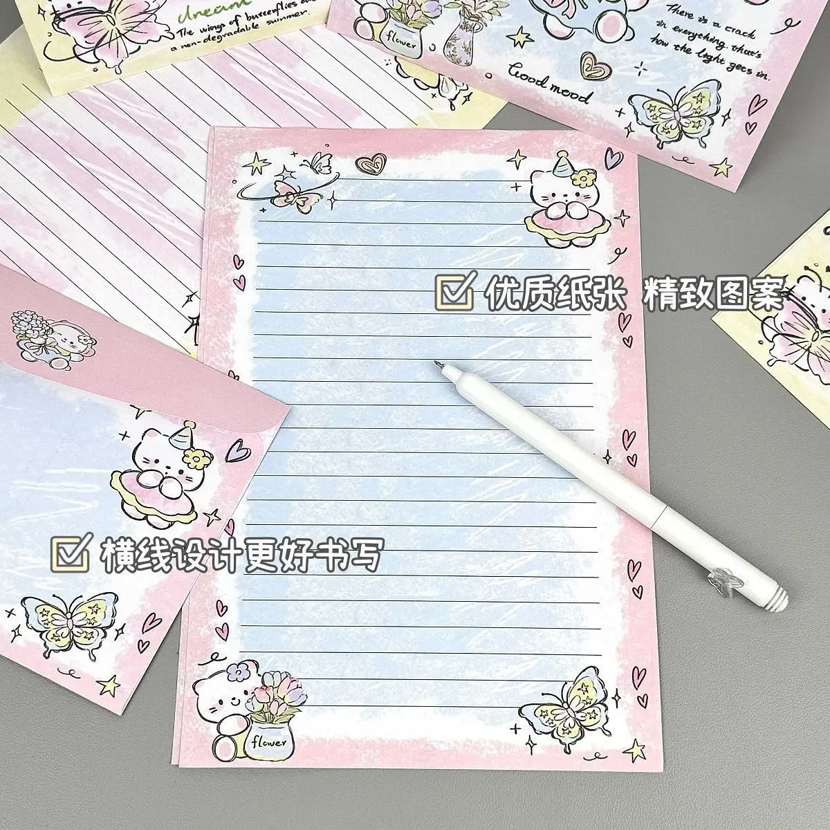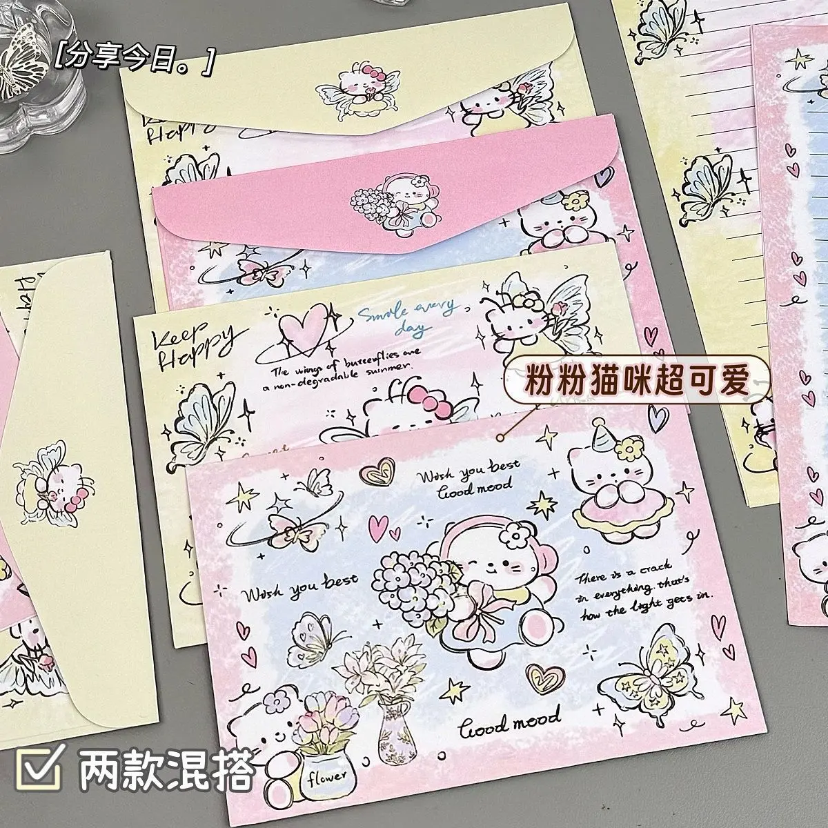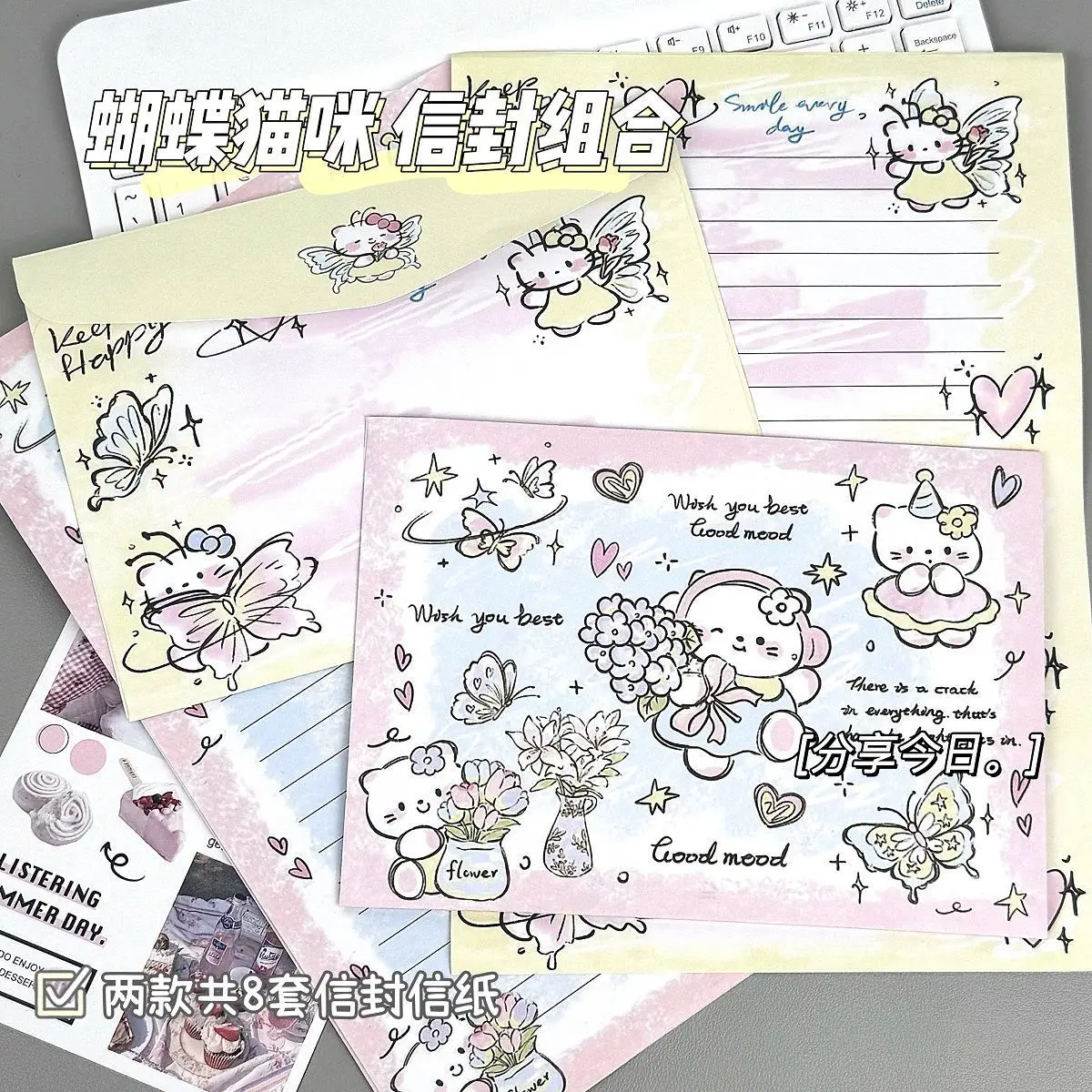 爆款蝴蝶猫咪信封信纸套装组合ins高颜值学生送礼书写丝滑双胶