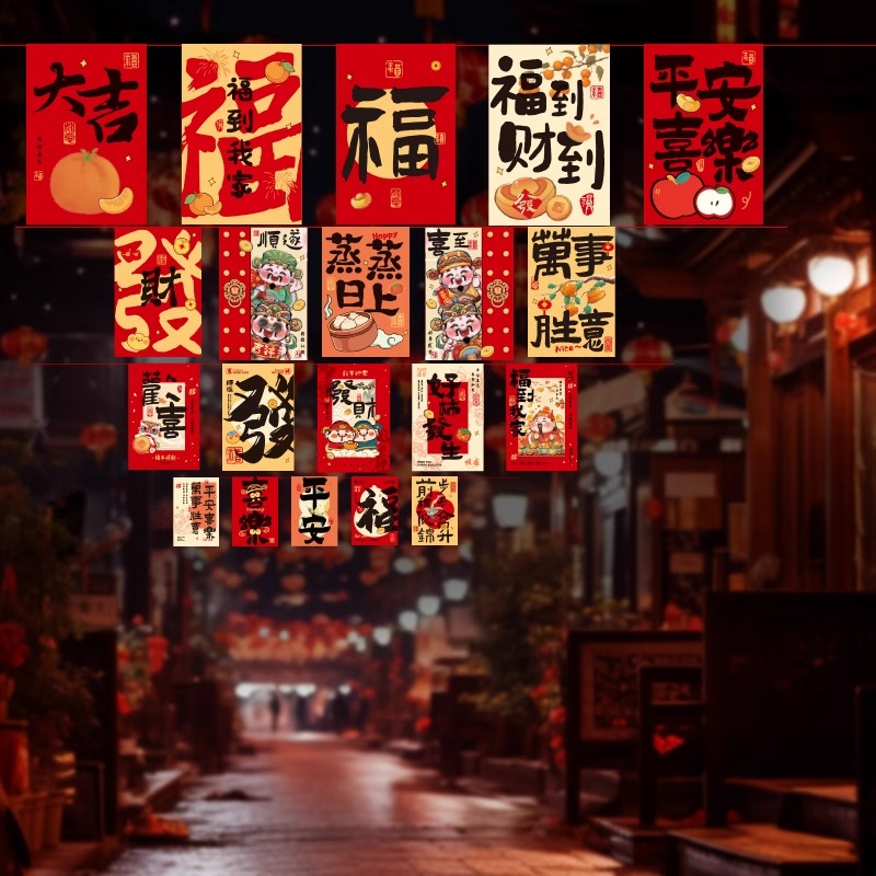 2026春节福气元素串旗拉旗挂件店铺商场吊旗拉花场景氛围布置装扮