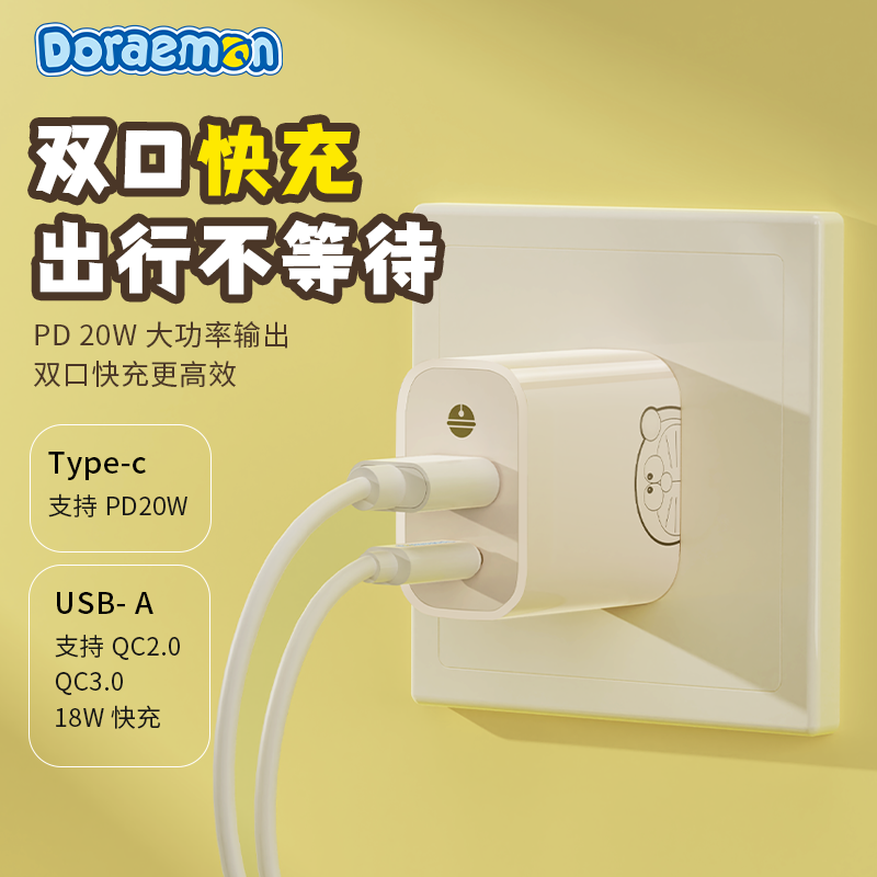 哆啦a梦适用于苹果17Pro充电器iphone16手机快充15promax一套多口14平板ipad华为20W安卓usb数据线套装13plus