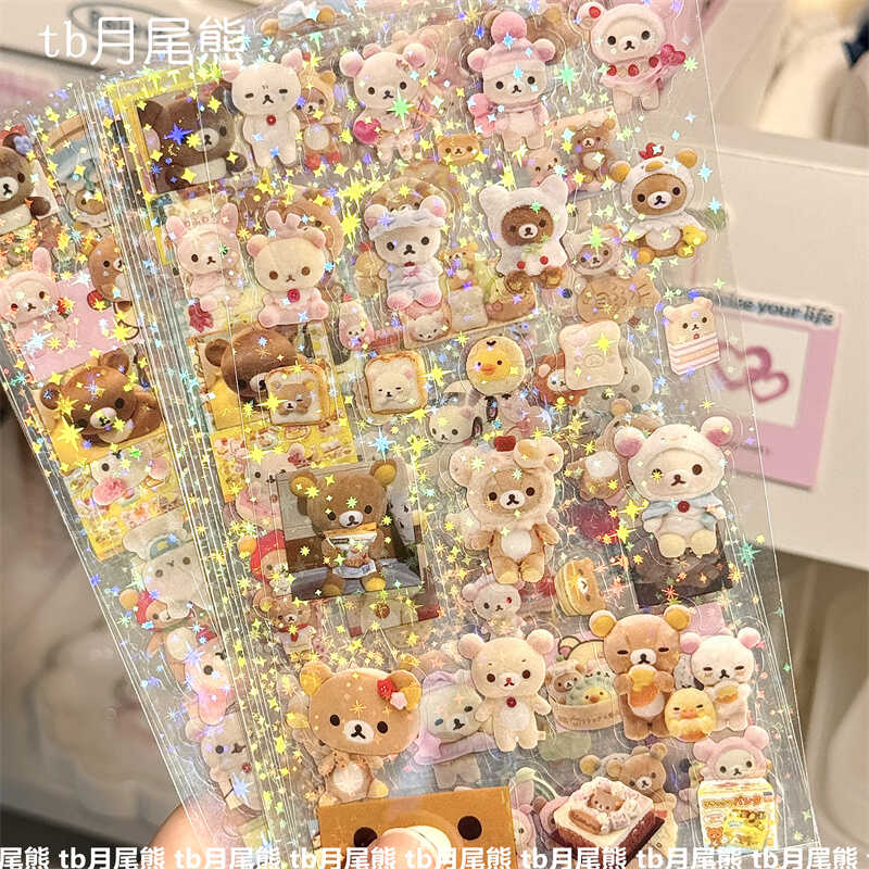 古早卡通昭和风轻松熊可爱手帐贴纸装饰咕手机壳双透切膜贴纸星闪