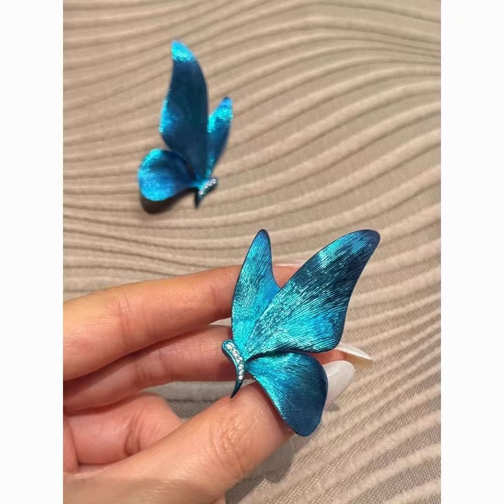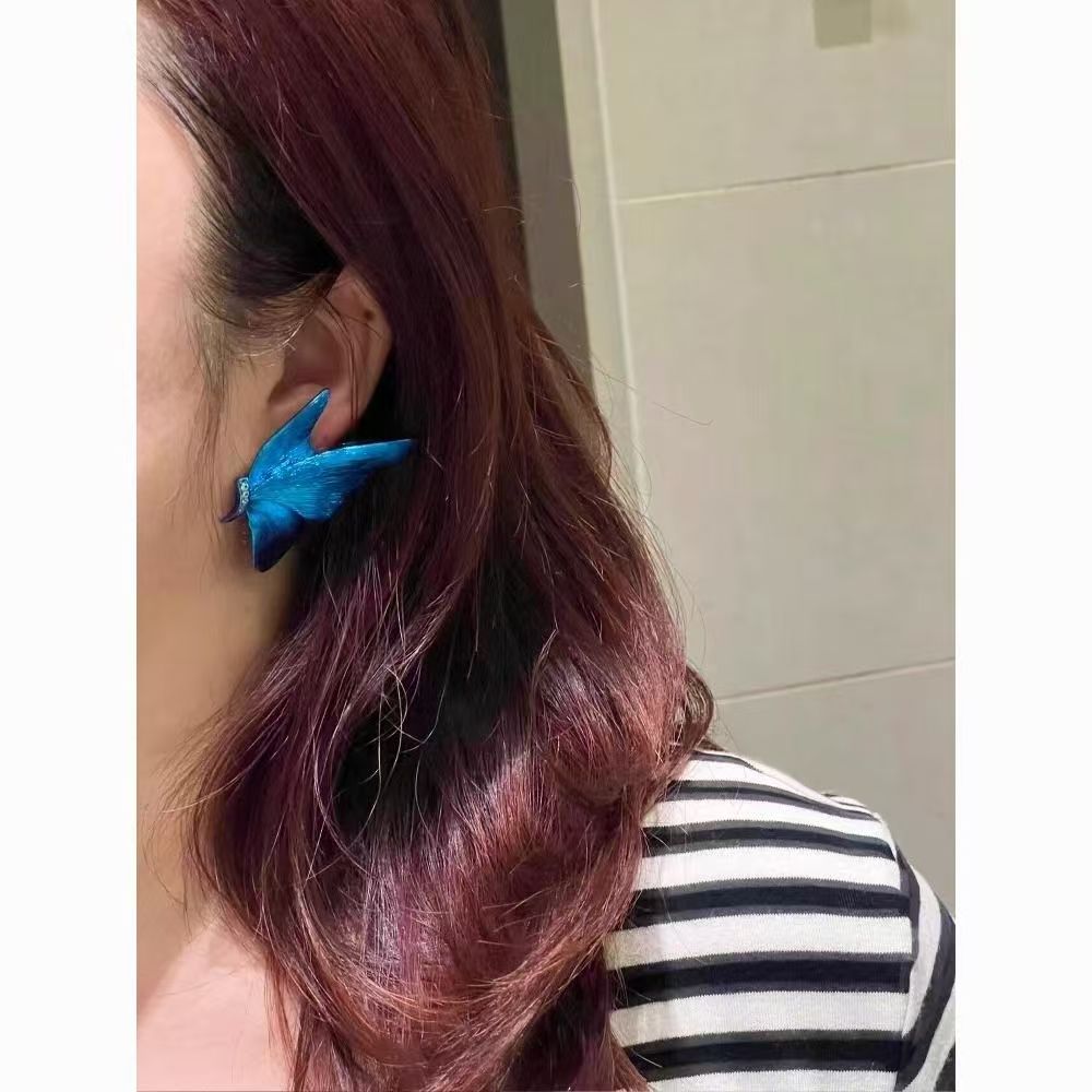 新中式治愈系蝴蝶耳钉耳环女小众设计蓝色风格耳饰精致高级感饰品