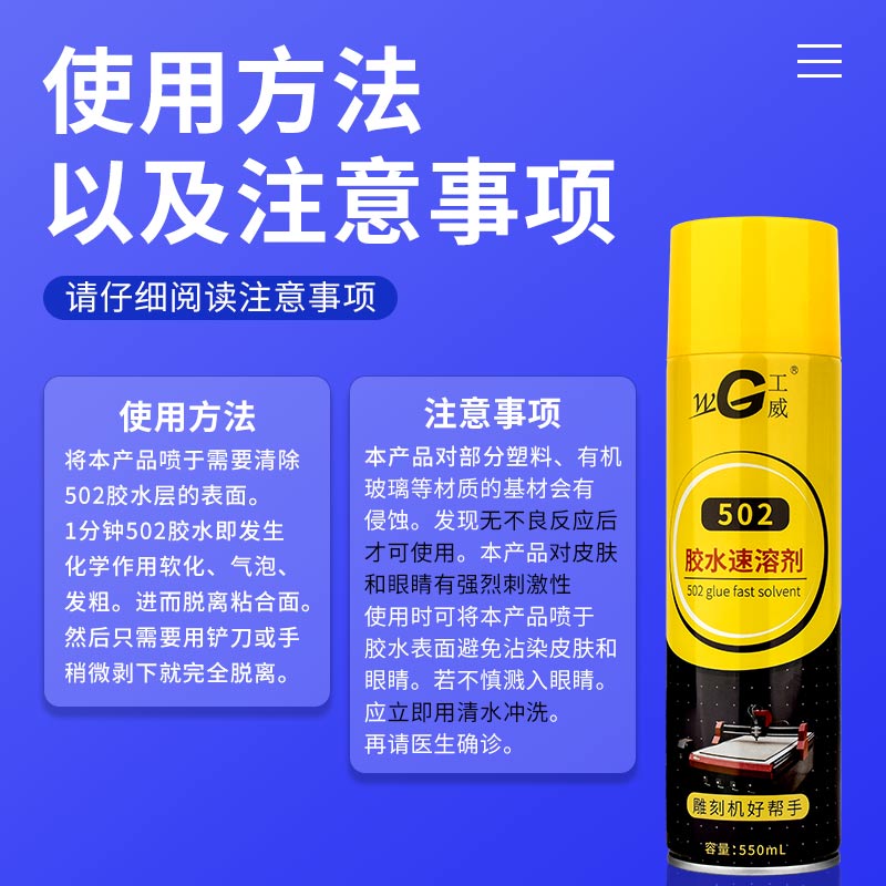 热销工威502胶水速溶剂解胶剂除胶剂胶水剂雕刻机好帮手去除残胶