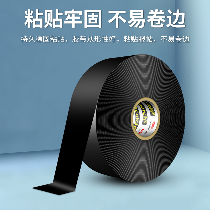 3M130C防水电工无衬层的乙丙橡胶带高压绝缘胶带耐高温黑色胶布