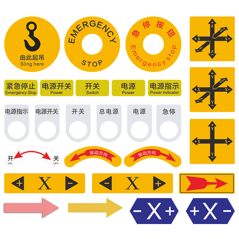 现货速发急停按钮紧急停止PVC标贴胶片贴机械标签机器箭头标识不