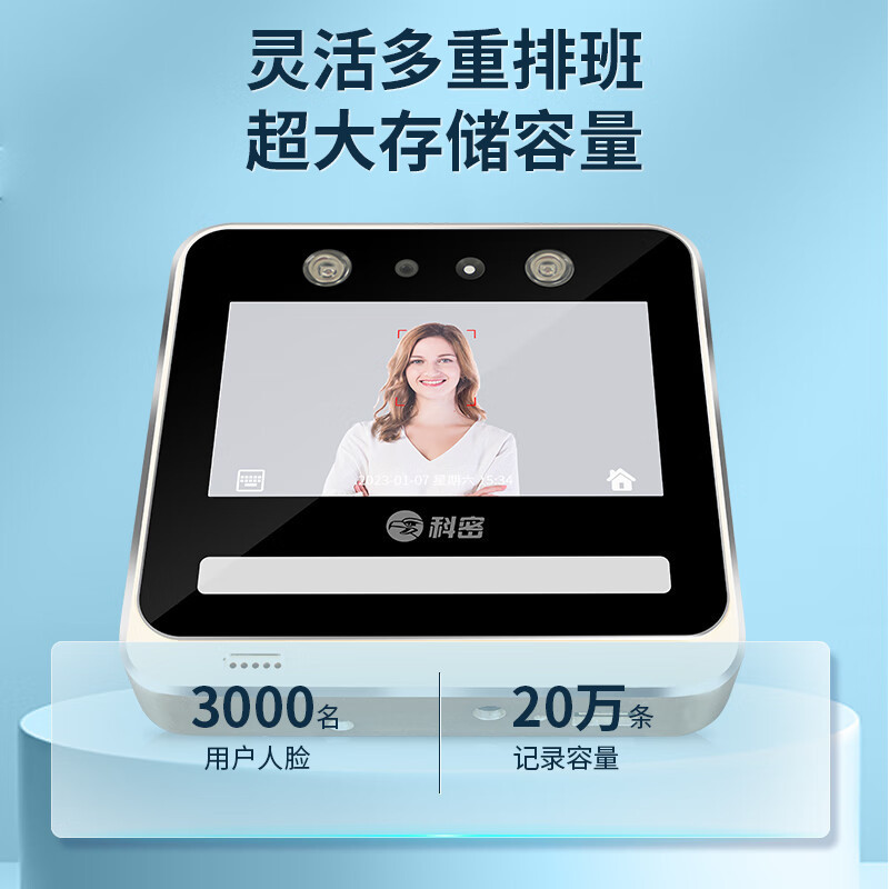 科密 V-03 动态人脸识别考勤机 多人同时打卡机 wifi连接 5英寸