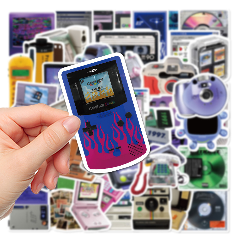 50张复古设备贴纸复古游戏机CD光盘手机壳手账本装饰防水DIY贴画