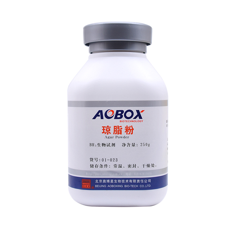 琼脂粉100g/瓶 微生物培养基 生物试剂250g北京奥博星包邮01-023