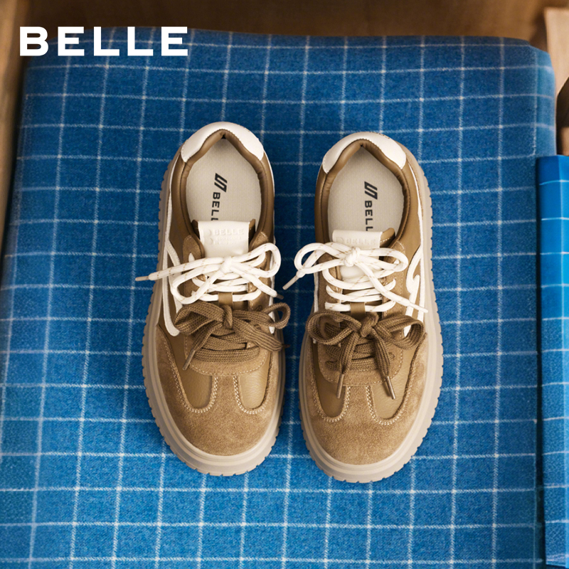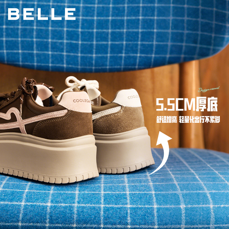 百丽厚底双鞋带小白板鞋女新款美拉德运动休闲面包鞋子B2906CM5预