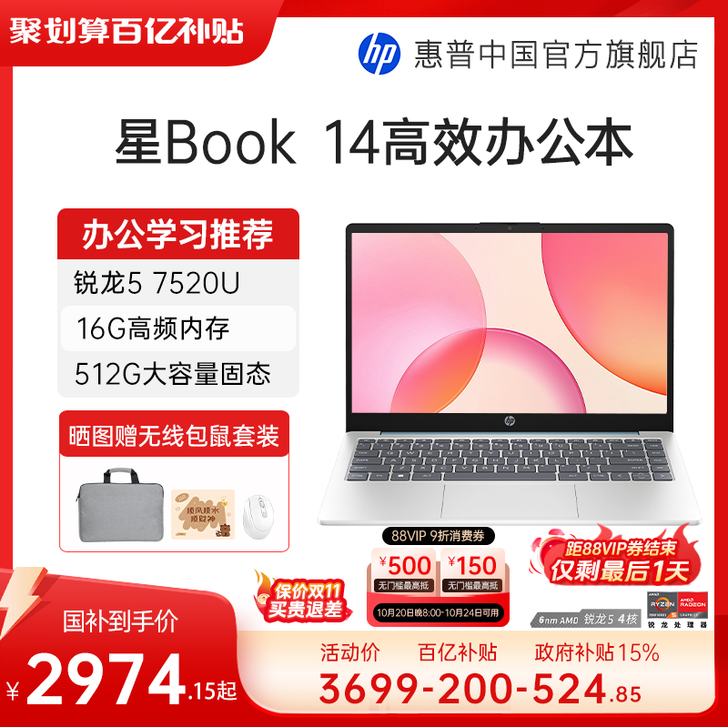 【详情抢百补红包+全国补贴15%】HP/惠普可选星book 14/15可选锐龙R5 处理器笔记本电脑学生办公本惠普官方店