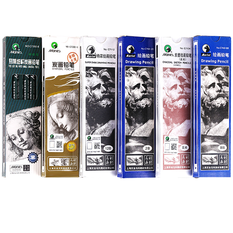 马利素描铅笔炭笔2B/4B/6B/8B美术联考绘画写生绘图铅笔2H特浓12B14B亚光软中硬炭笔速写2比艺考练习用包邮