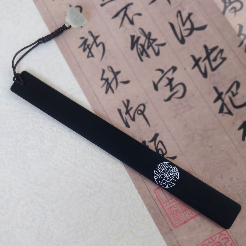 极速汉文化长乐未央长毋相忘永不停E止黑檀手工镶银丝吉祥刻字文