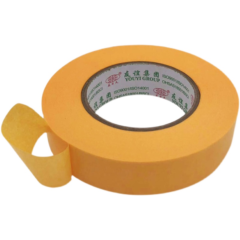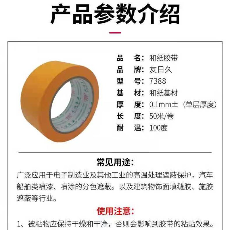 友日久大纸管7388和纸胶带黄色50米防水耐高温遮蔽装修喷漆美缝纸