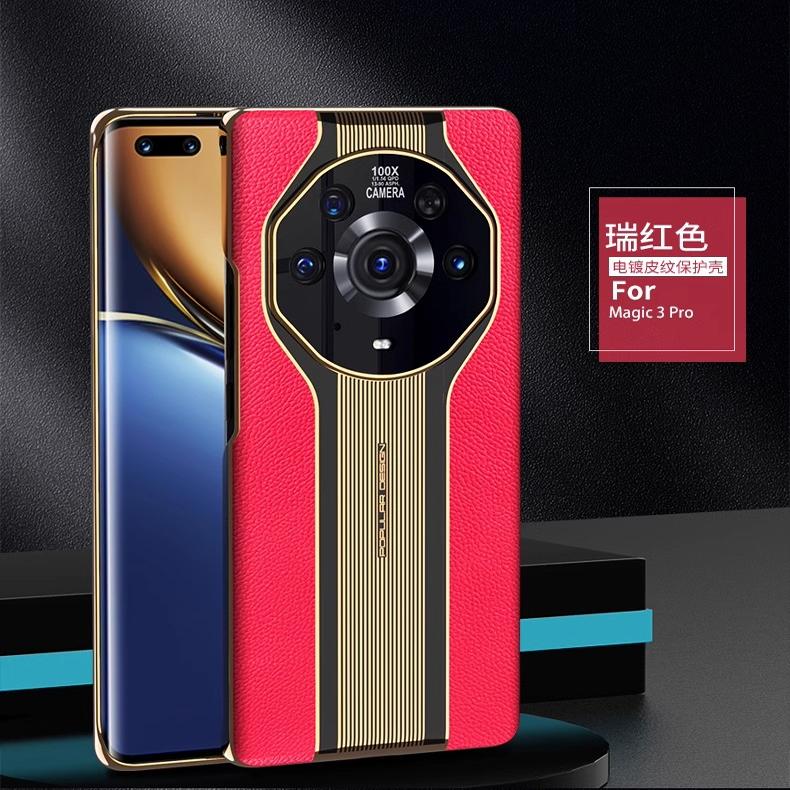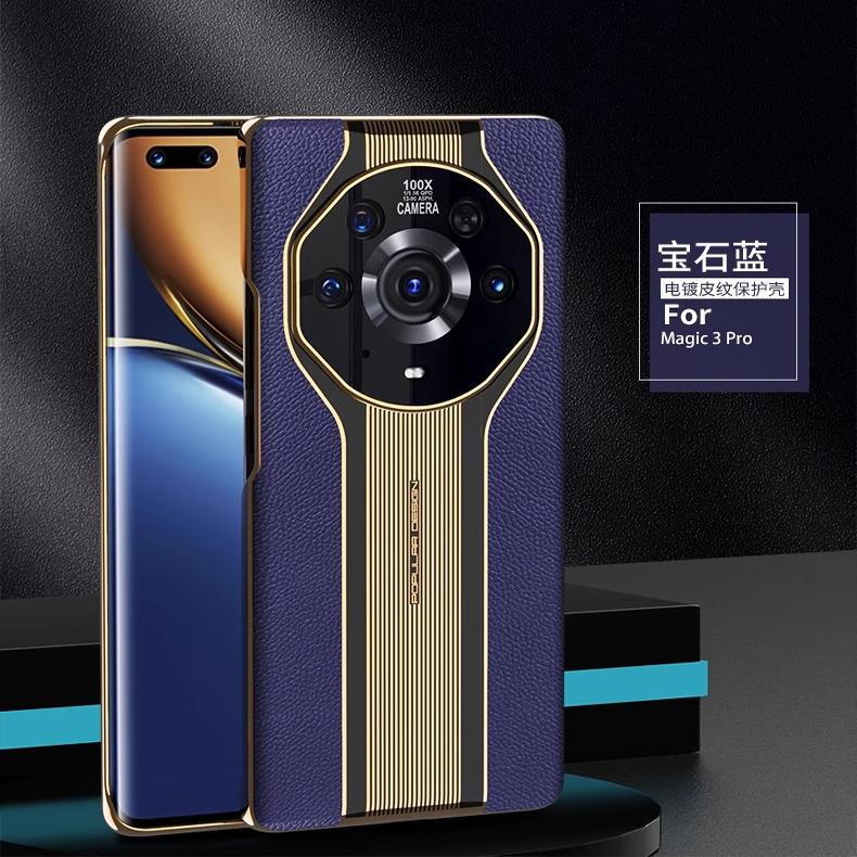 适用于华为荣耀magic3手机壳6p头层牛皮magic5pro保时捷款真皮护镜magic4至臻版秒变超跑6rsr真皮无边框时尚