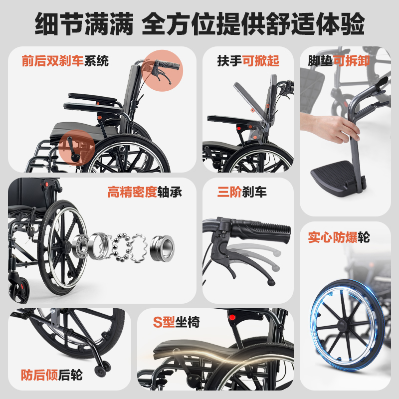 轮椅老人专用折叠轻便小型瘫痪老年人便携式医院同款手推车铝合金