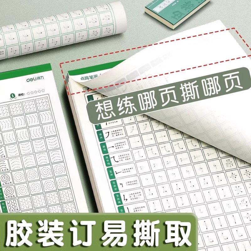 得力点阵控笔训练字帖楷书一年级二年级练字本初学者入门笔画偏旁部首字小学生幼儿园幼小衔接硬笔书法护眼纸