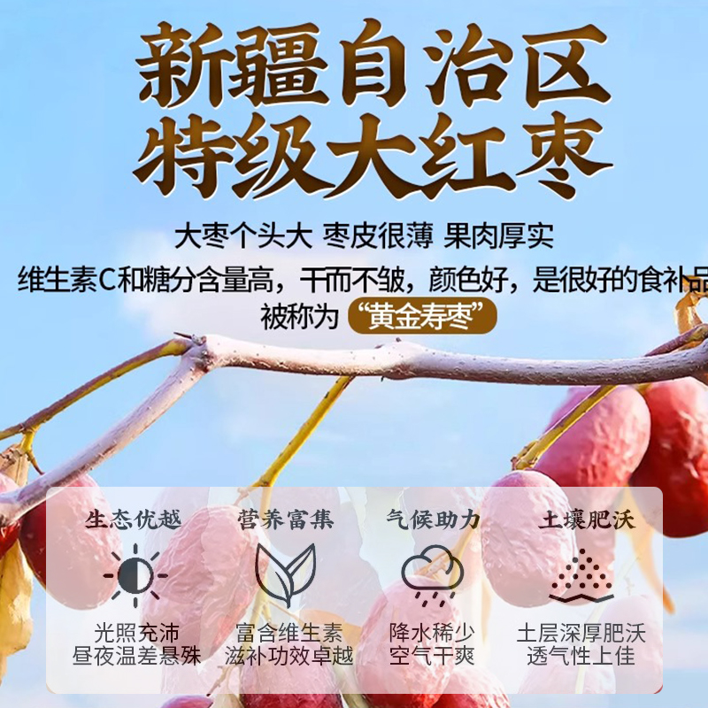 新疆红枣特级和田大枣零食特产一级大红枣子新蜜枣干果官方旗舰店