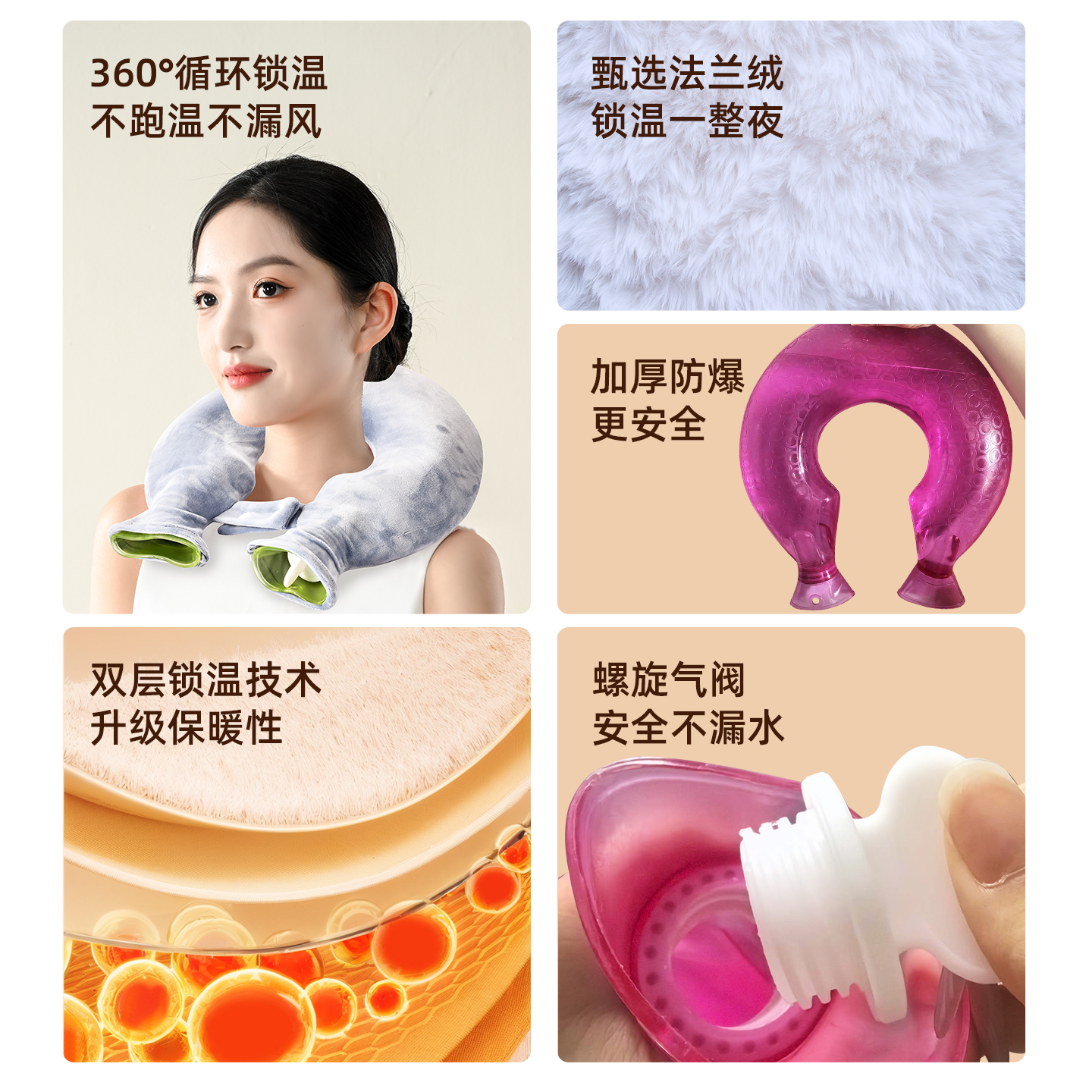 热水袋U型颈椎热敷注水灌水肩颈脖子颈部理疗热敷暖宝宝防爆加厚