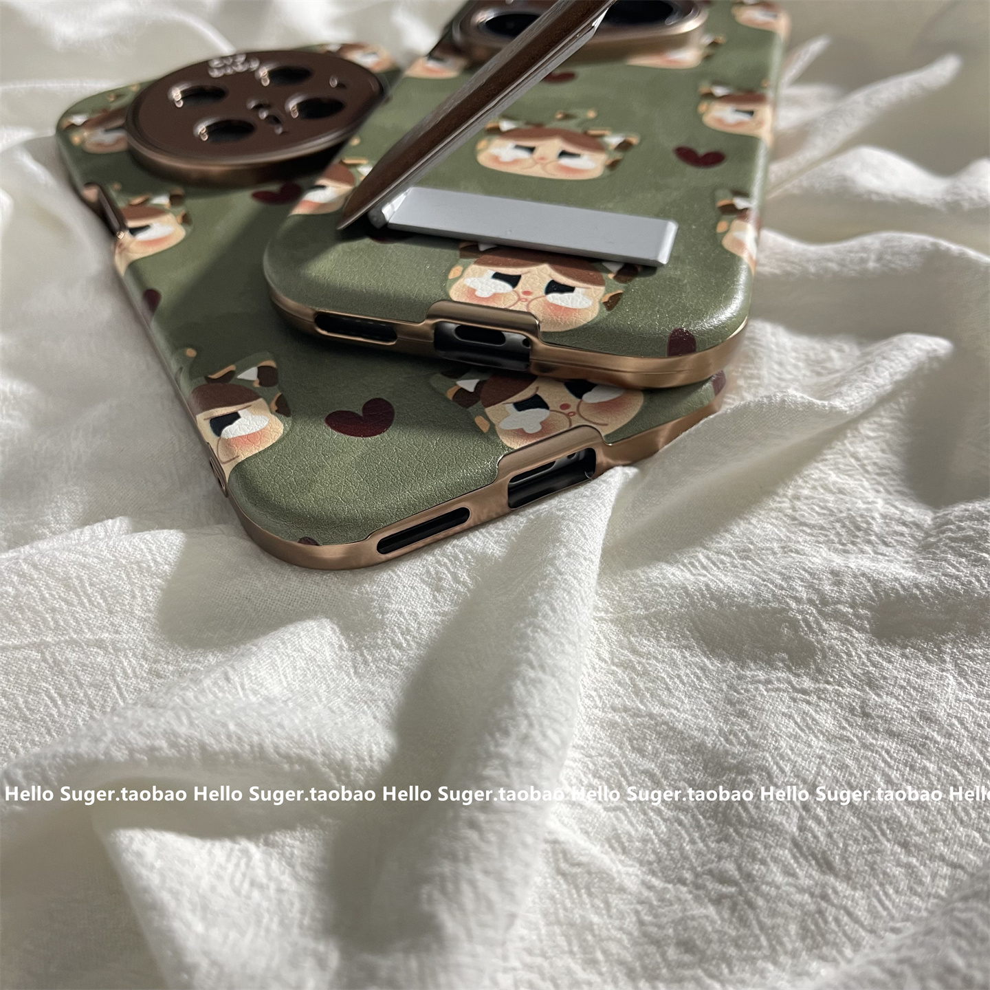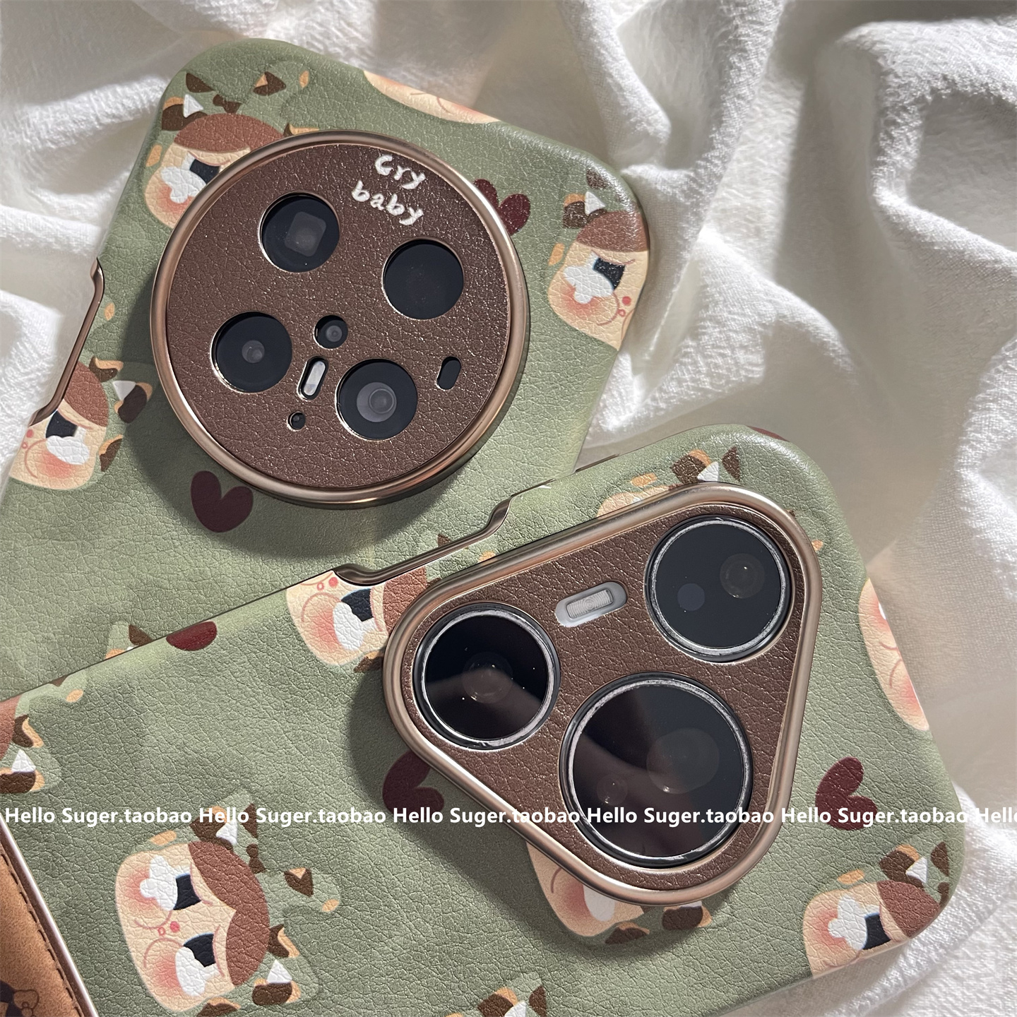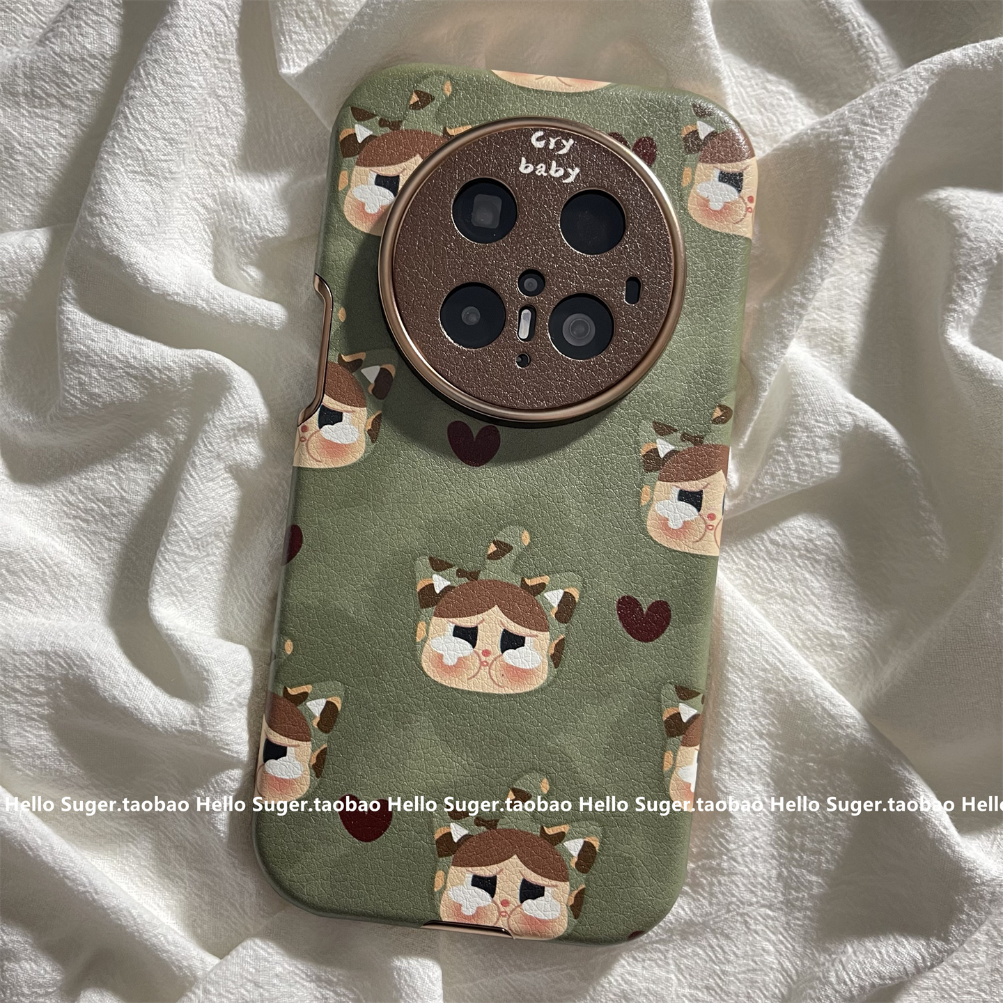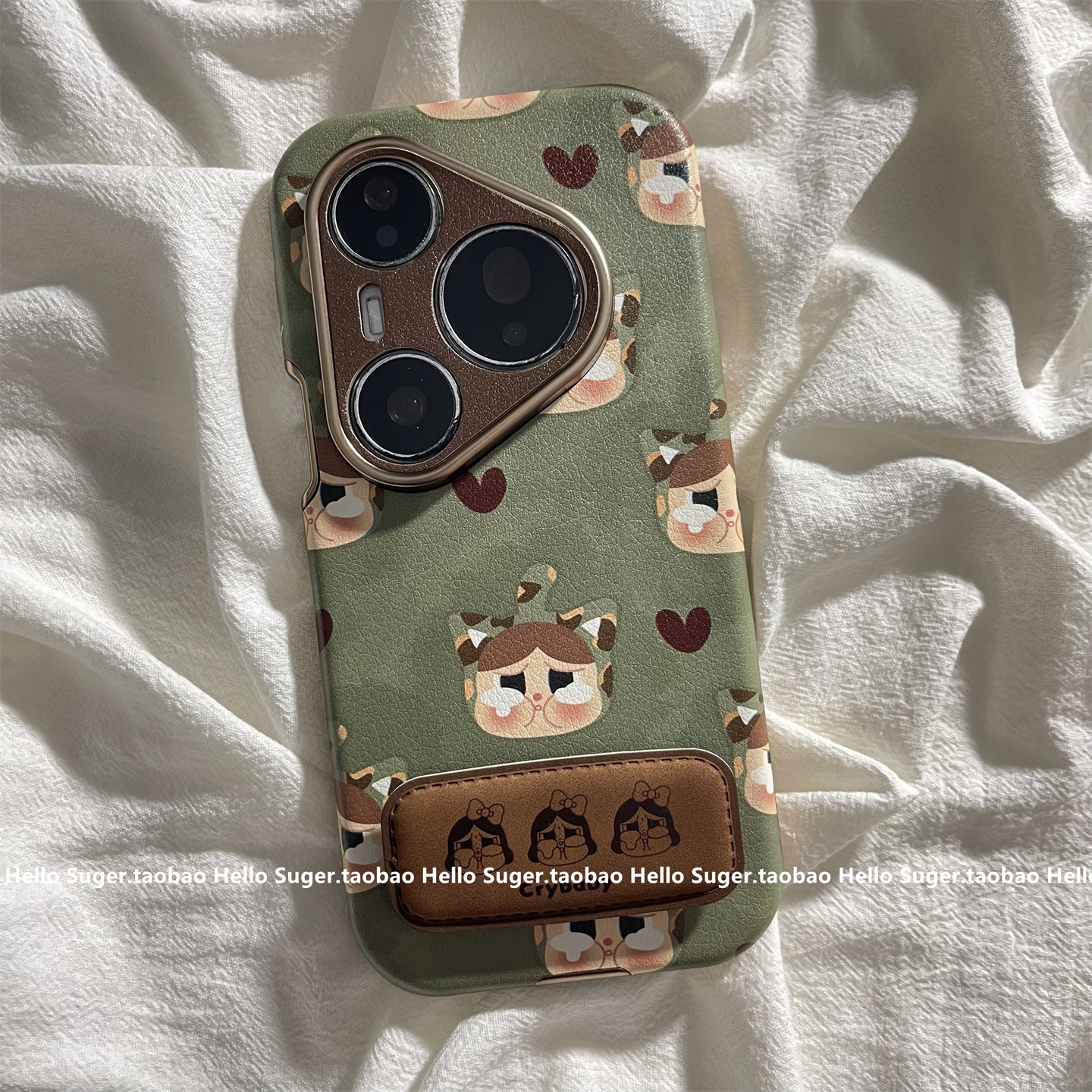 秋冬皮质复古绿色可爱哭泣女孩适用华为mate70pro+手机壳pura80pro皮质大视窗mate60pro保护套pura70折叠支架